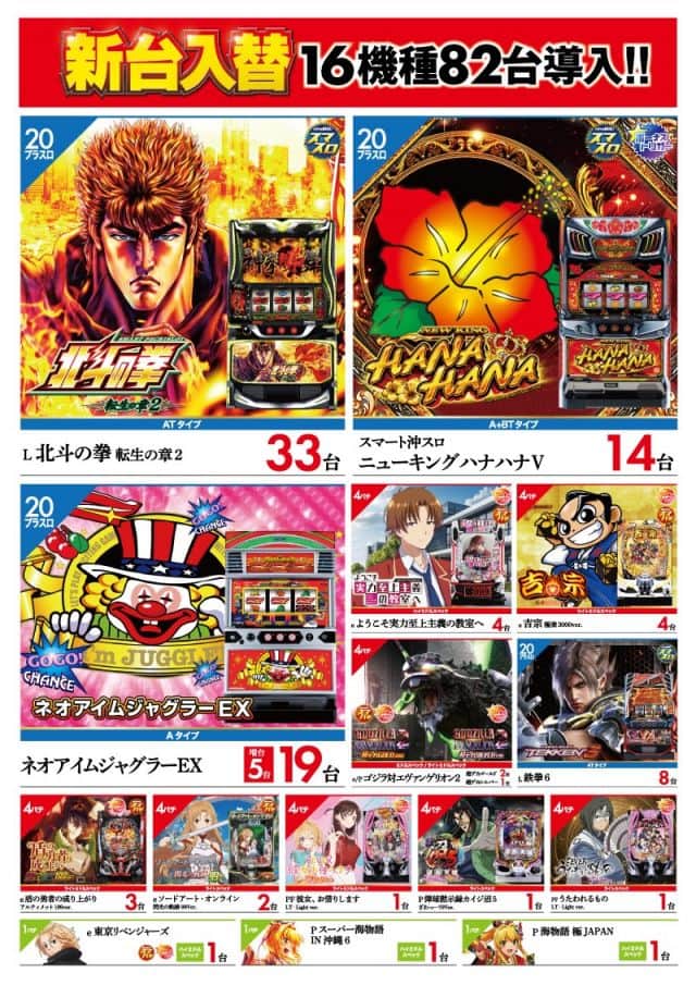 | 営業時間 | 09:00 ~ 23:00(定休日:年中無休(新台入替時はお休を頂く場合がございます)) |