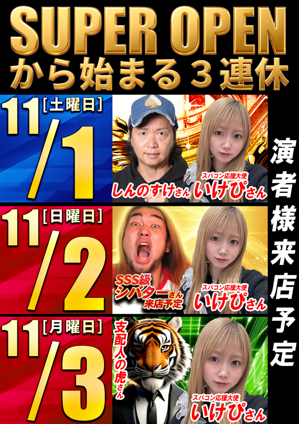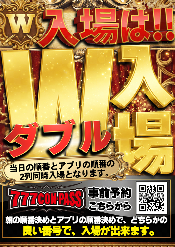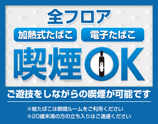 | 営業時間 | 09:00 ~ 22:30(定休日:不定期(新台入替時お休みを頂く場合があります)) |