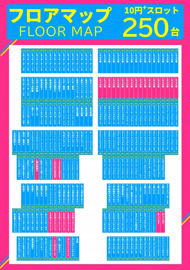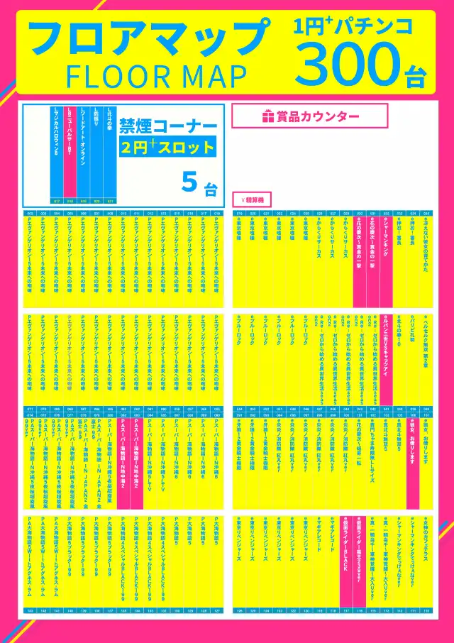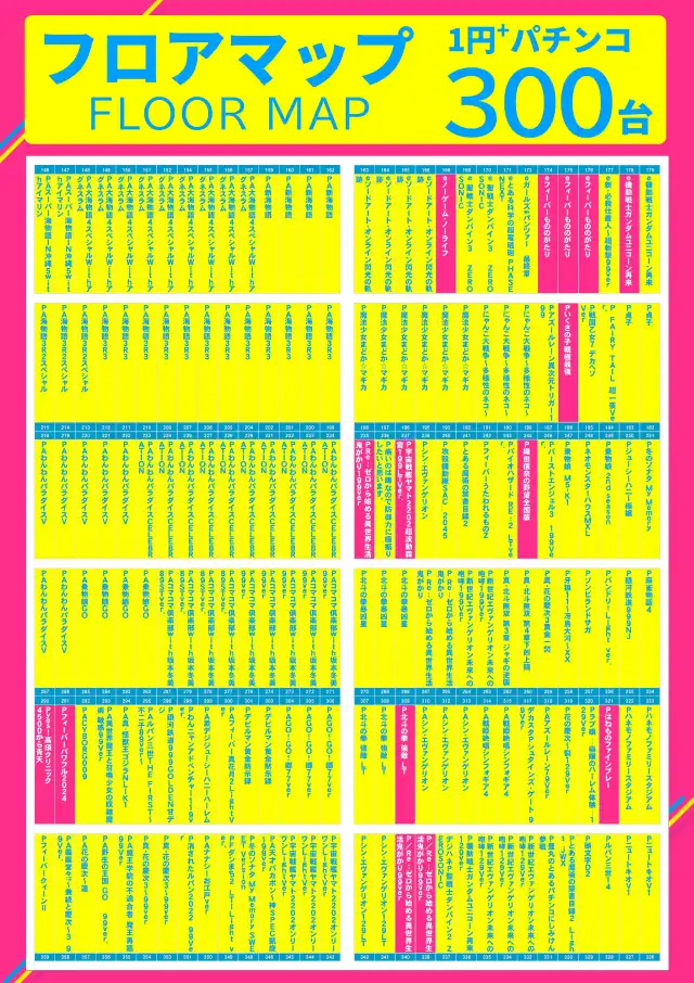 | 稼働台数 | パチンコ300台 / パチスロ255台 |