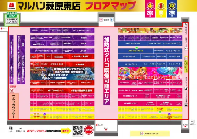 | 稼働台数 | パチンコ340台 / パチスロ250台 |