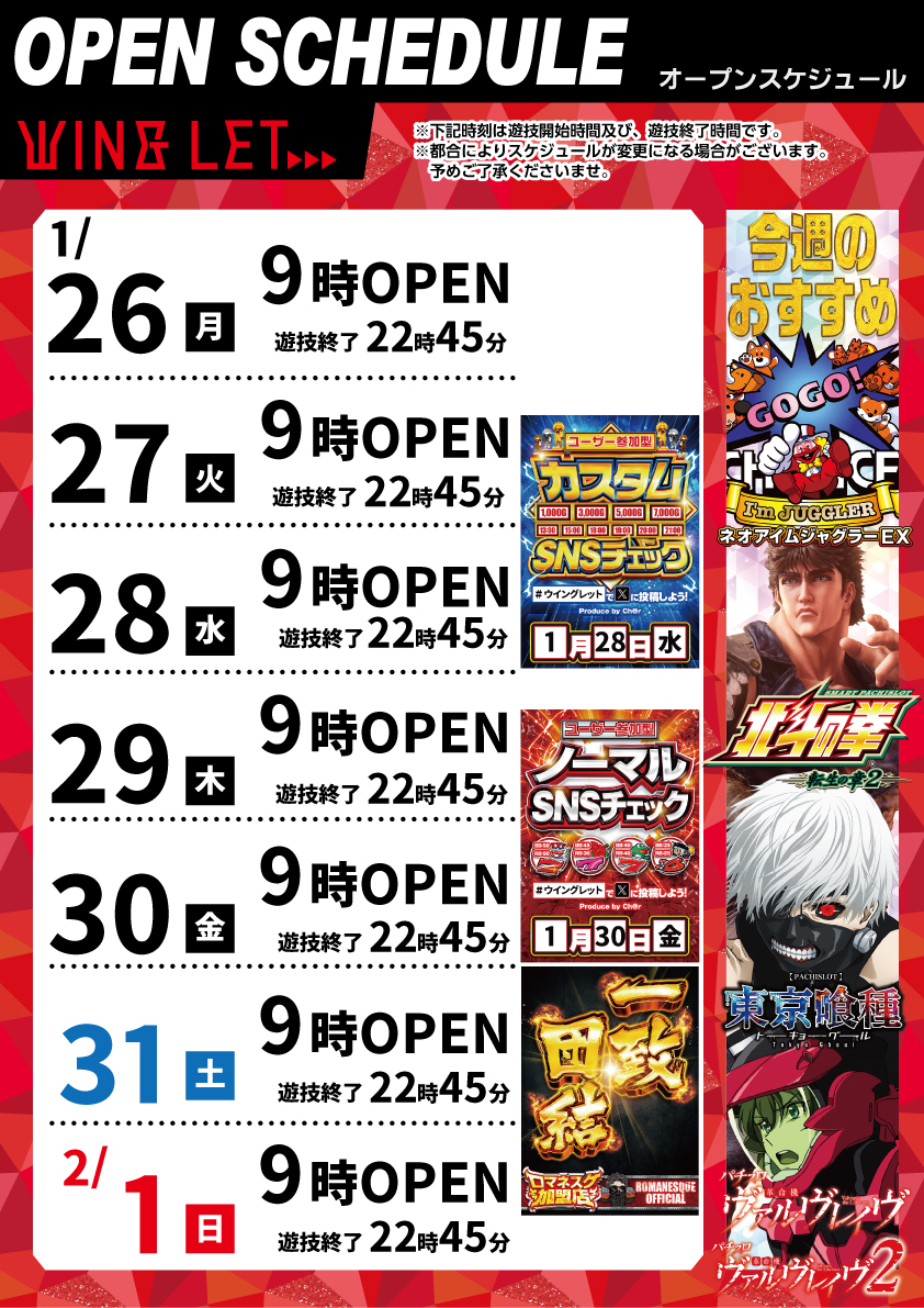 | 営業時間 | 09:00 ~ 22:45(定休日:年中無休(新台入替前日を除く)) |