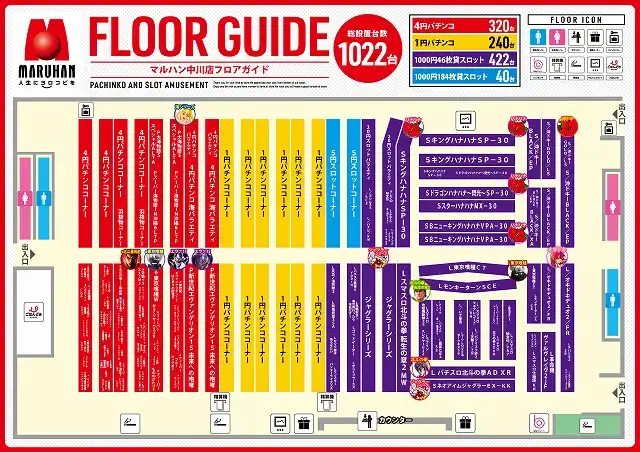 | 稼働台数 | パチンコ560台 / パチスロ462台 |