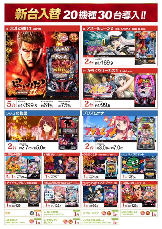 | 稼働台数 | パチンコ326台 / パチスロ207台 |
