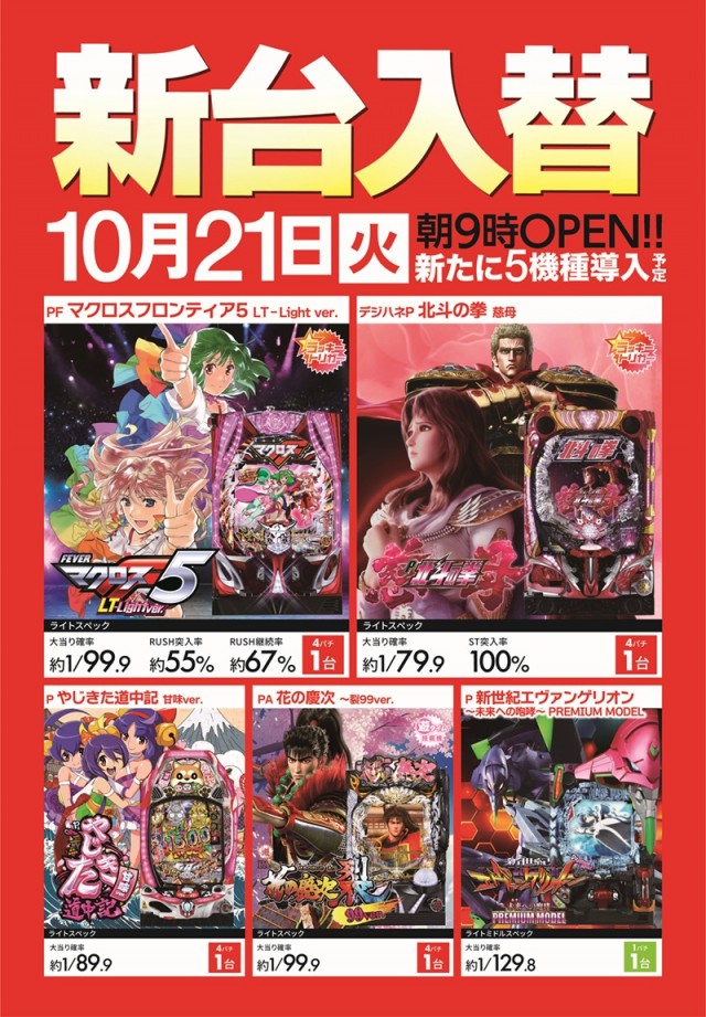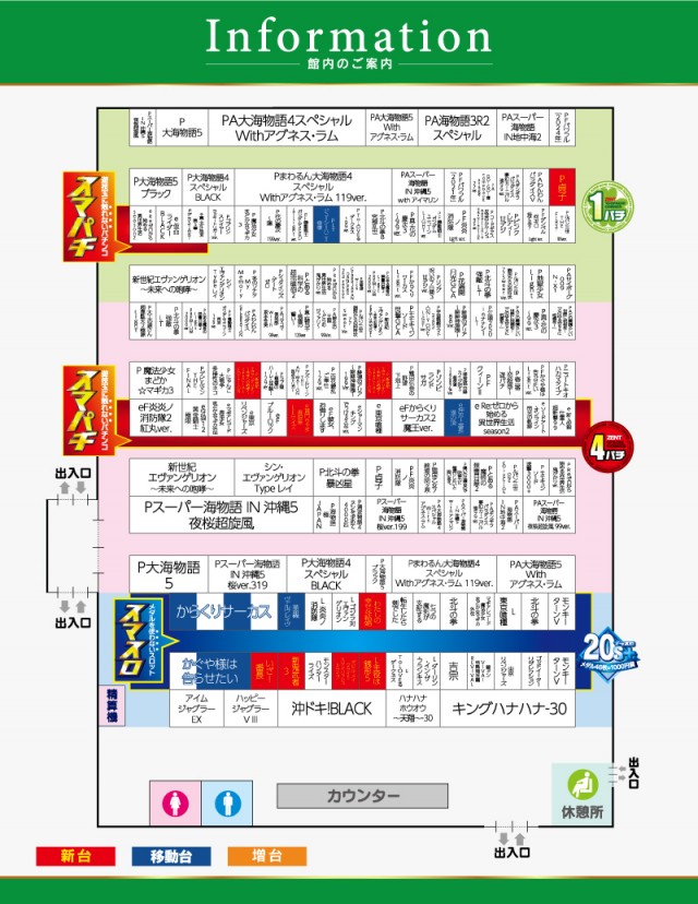 稼働台数 | パチンコ170台 / パチスロ45台 |