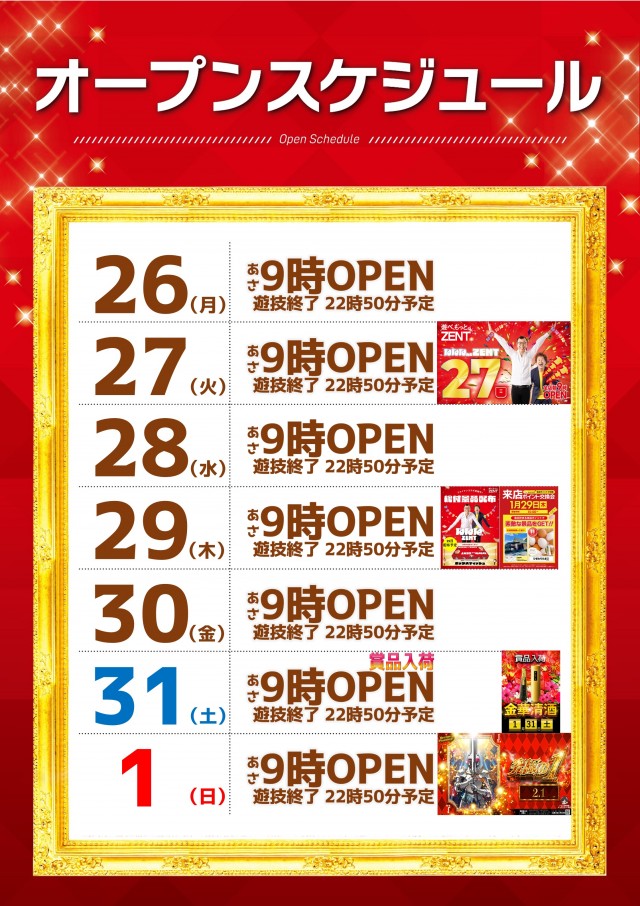| 営業時間 | 遊技時間22:50までとなります。 |