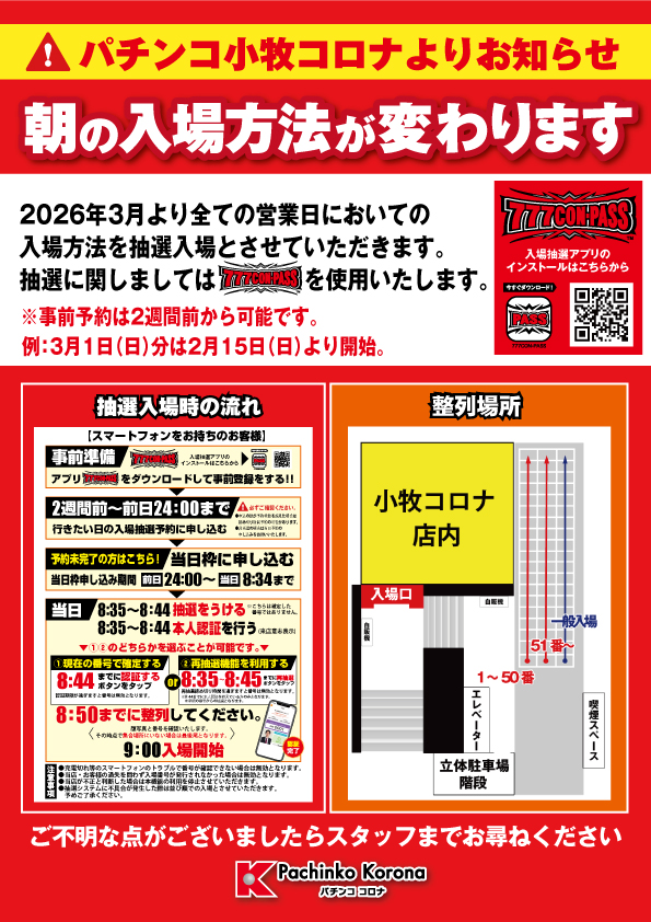 | 入場ルール | 並び順 |