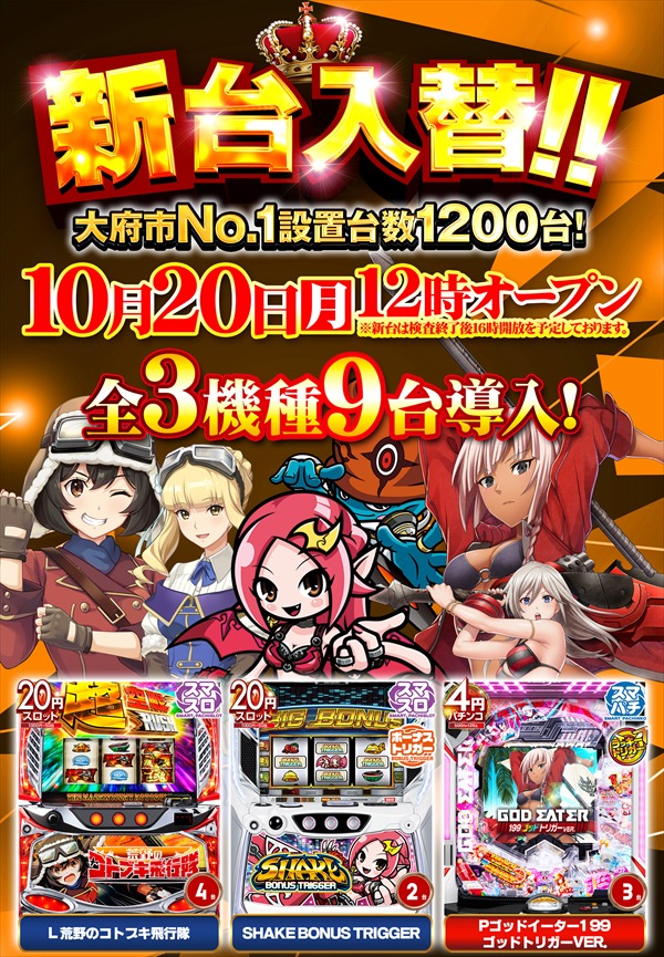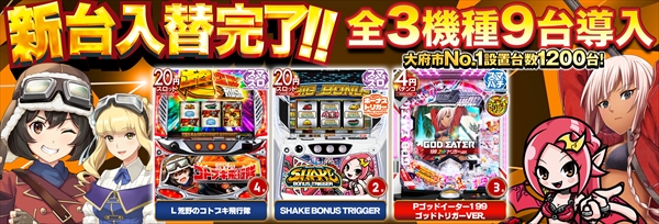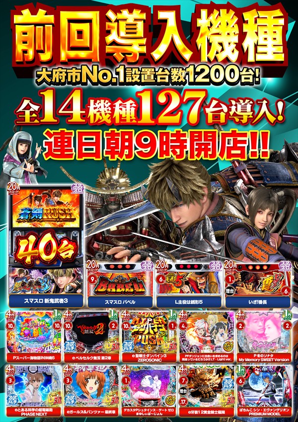 稼働台数 | パチンコ560台 / パチスロ640台 |