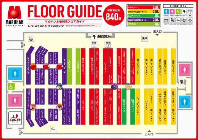 | 稼働台数 | パチンコ560台 / パチスロ280台 |
