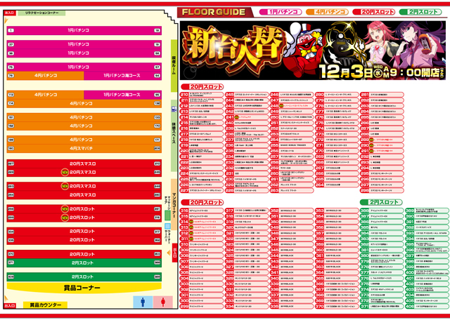 | 稼働台数 | パチンコ206台 / パチスロ196台 |
