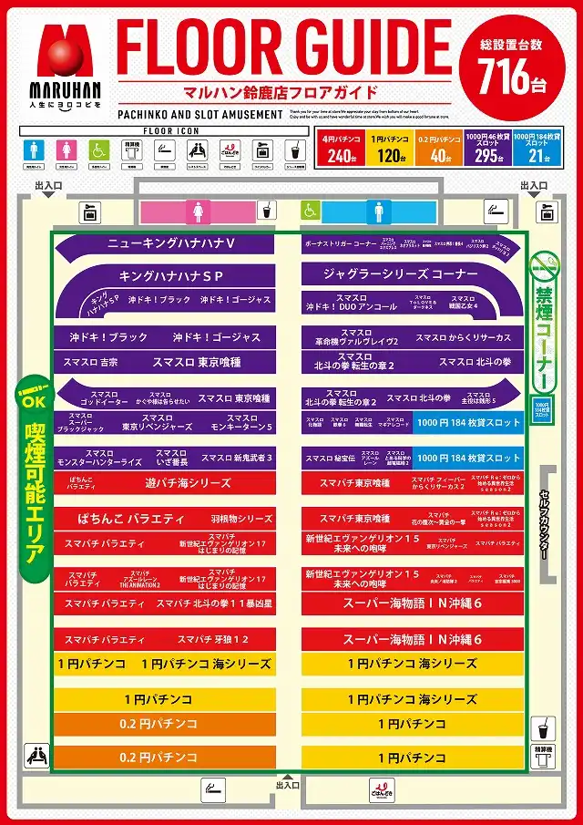 | 稼働台数 | パチンコ400台 / パチスロ316台 |