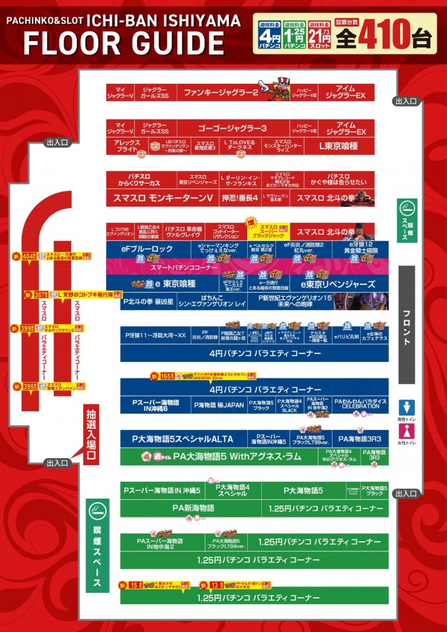| 稼働台数 | パチンコ268台 / パチスロ142台 |