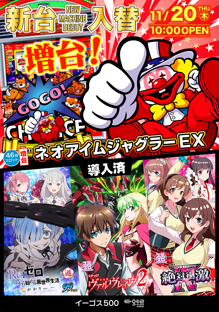 | 稼働台数 | パチンコ199台 / パチスロ229台 |