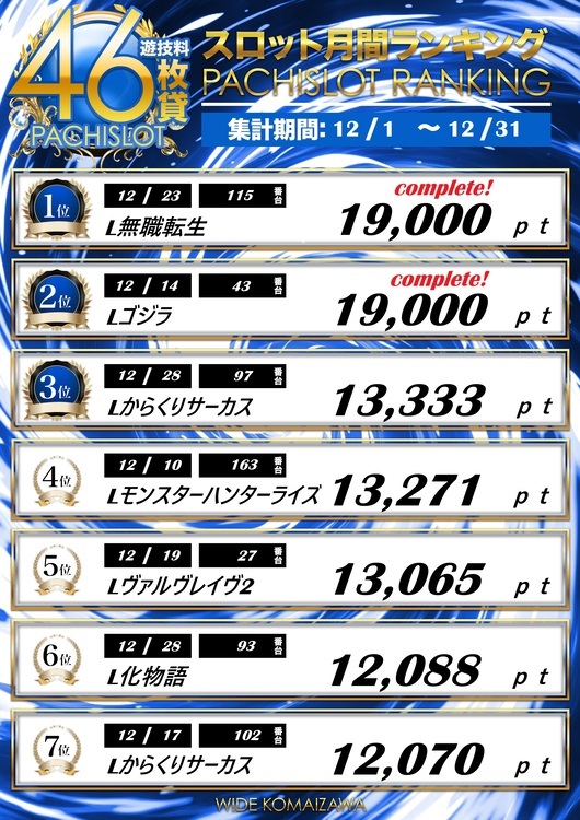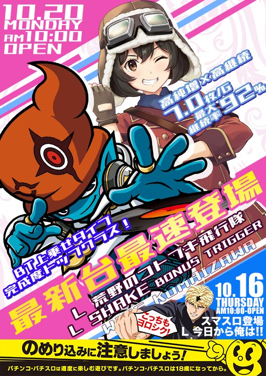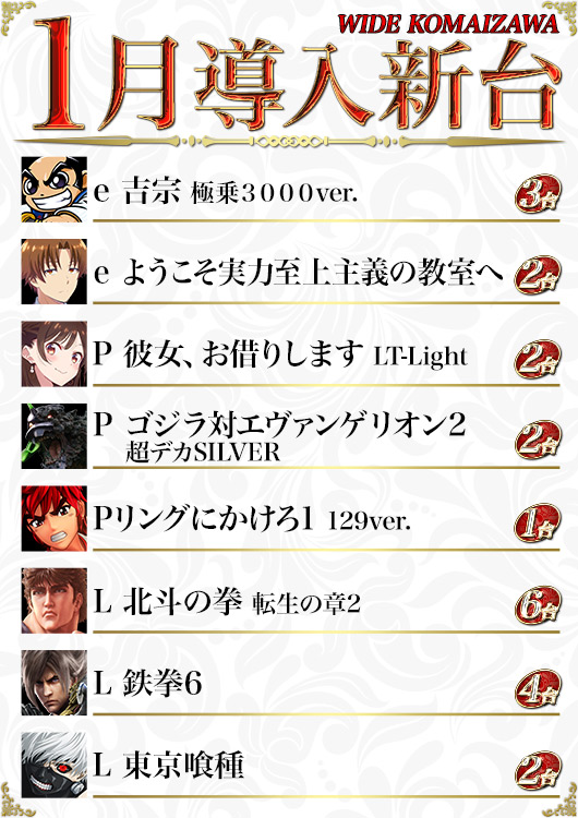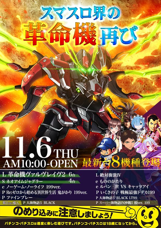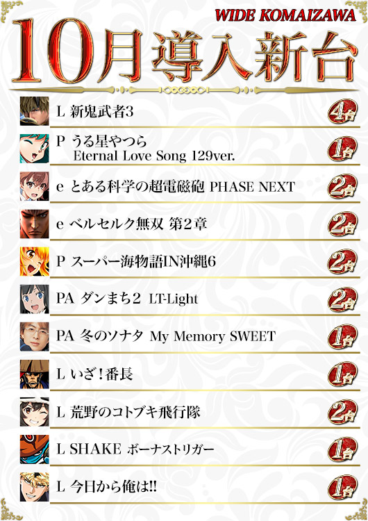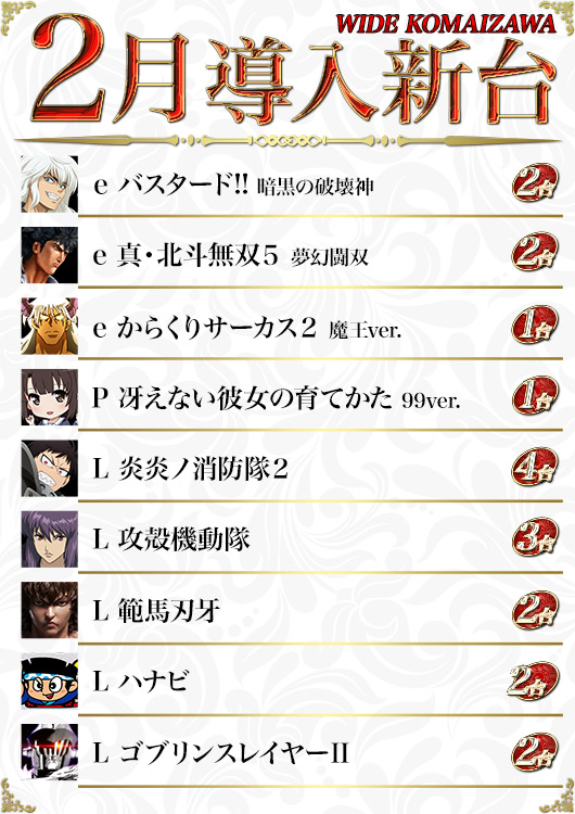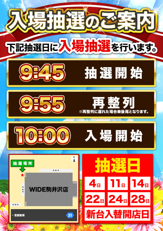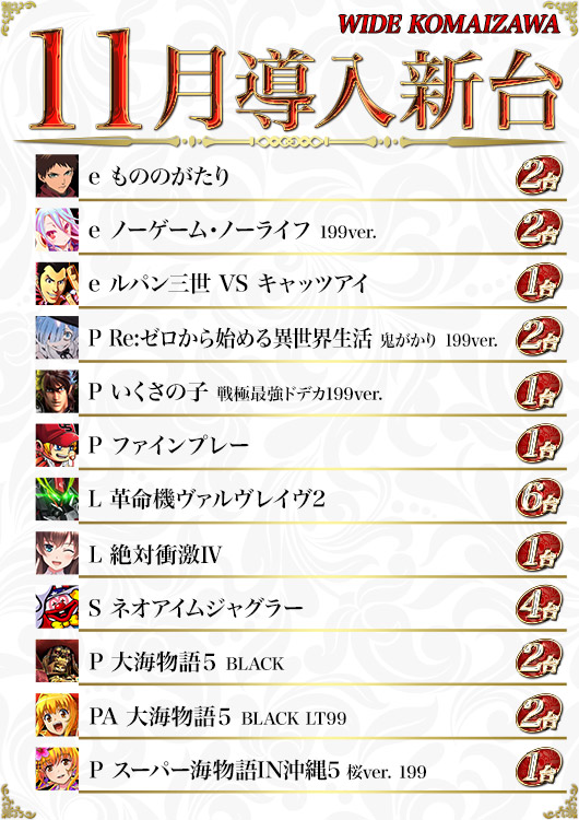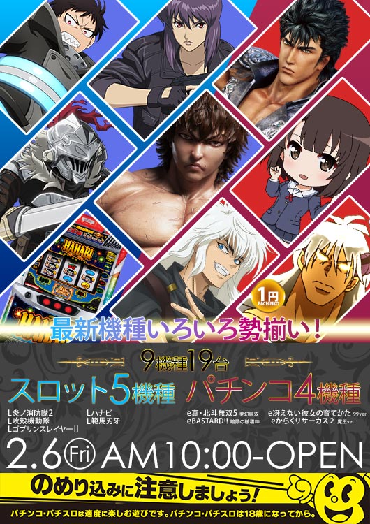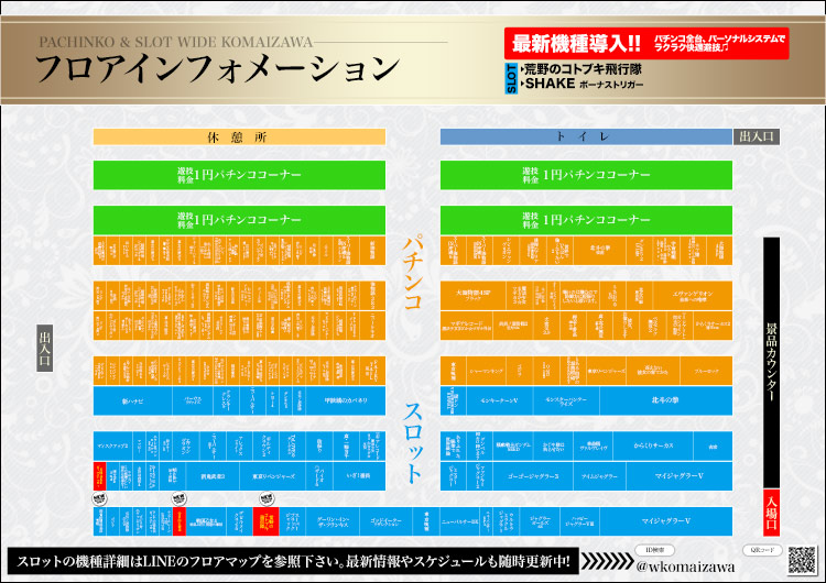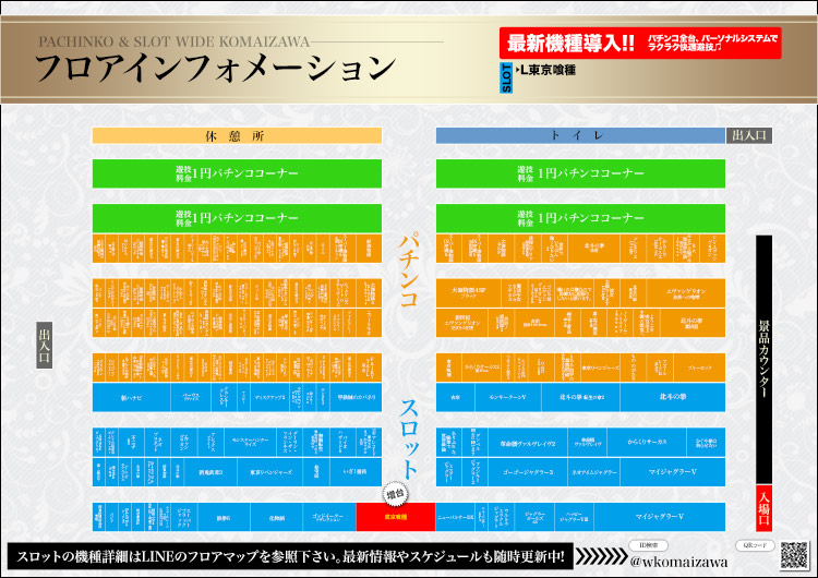 | 稼働台数 | パチンコ264台 / パチスロ180台 |