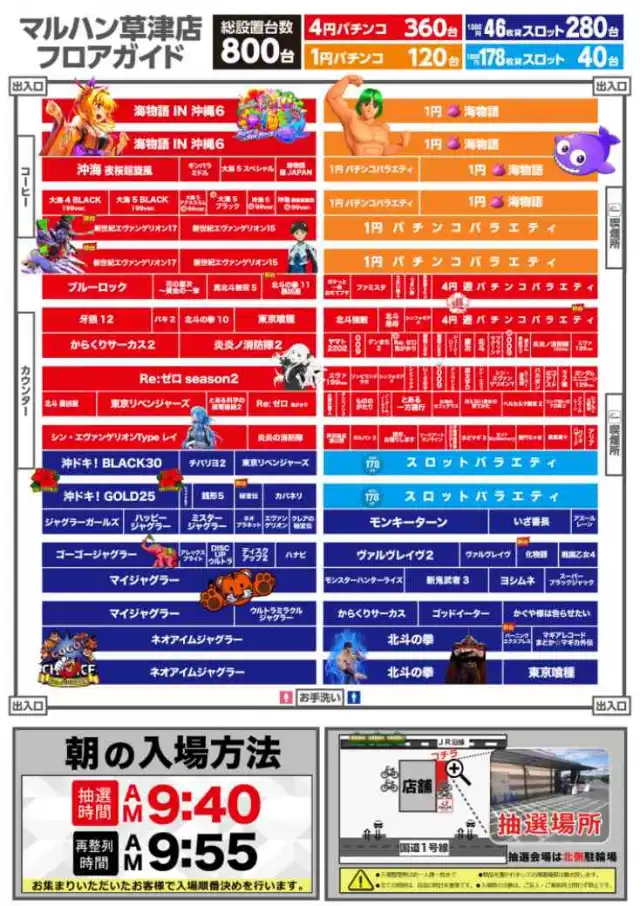 | 稼働台数 | パチンコ460台 / パチスロ318台 |