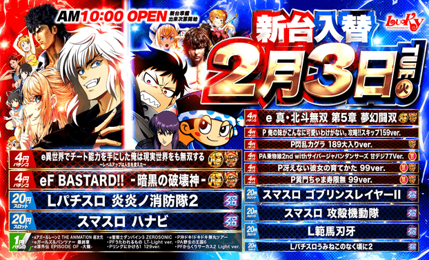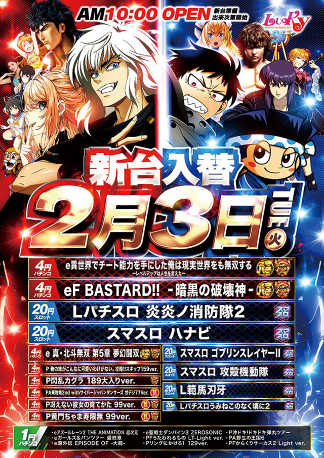| 稼働台数 | パチンコ257台 / パチスロ126台 |