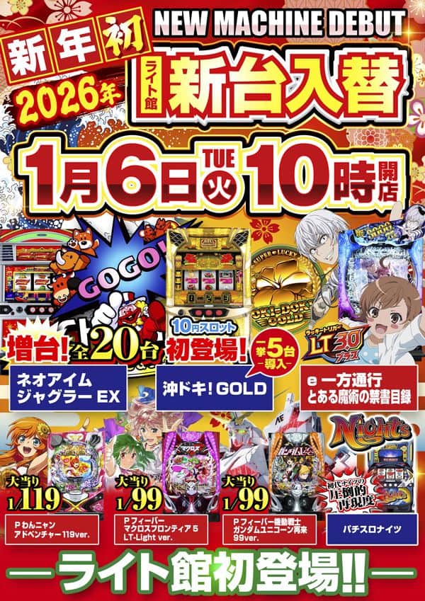 0.5円、1円、1.6円パチンコ&2円、10円スロット設置!