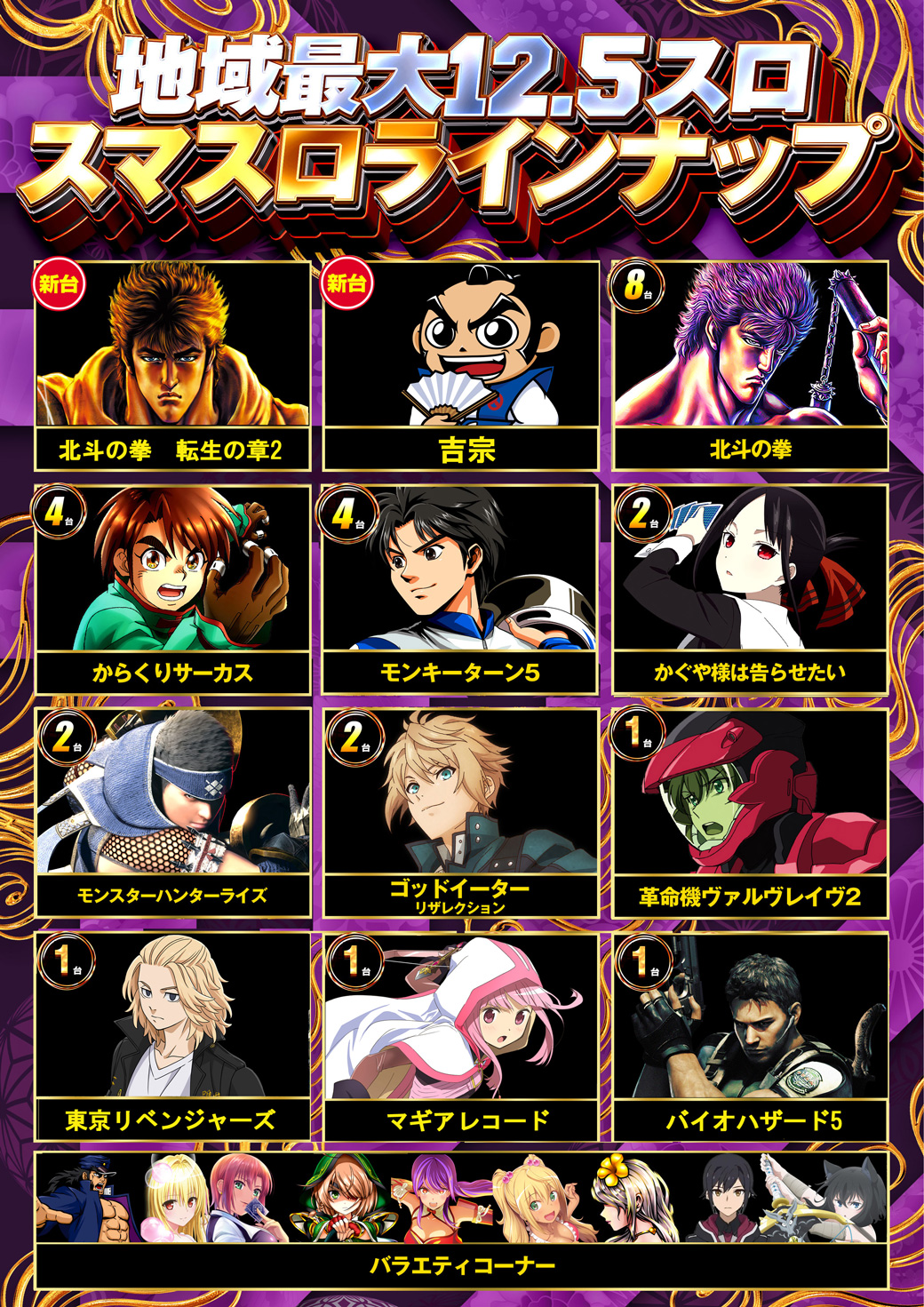 ☆地域最大1円パチンコ☆地域唯一☆12.5スロ導入☆5円スロット☆2.5円スロット