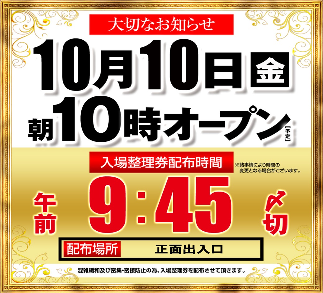 稼働台数 | パチンコ108台 / パチスロ130台 |