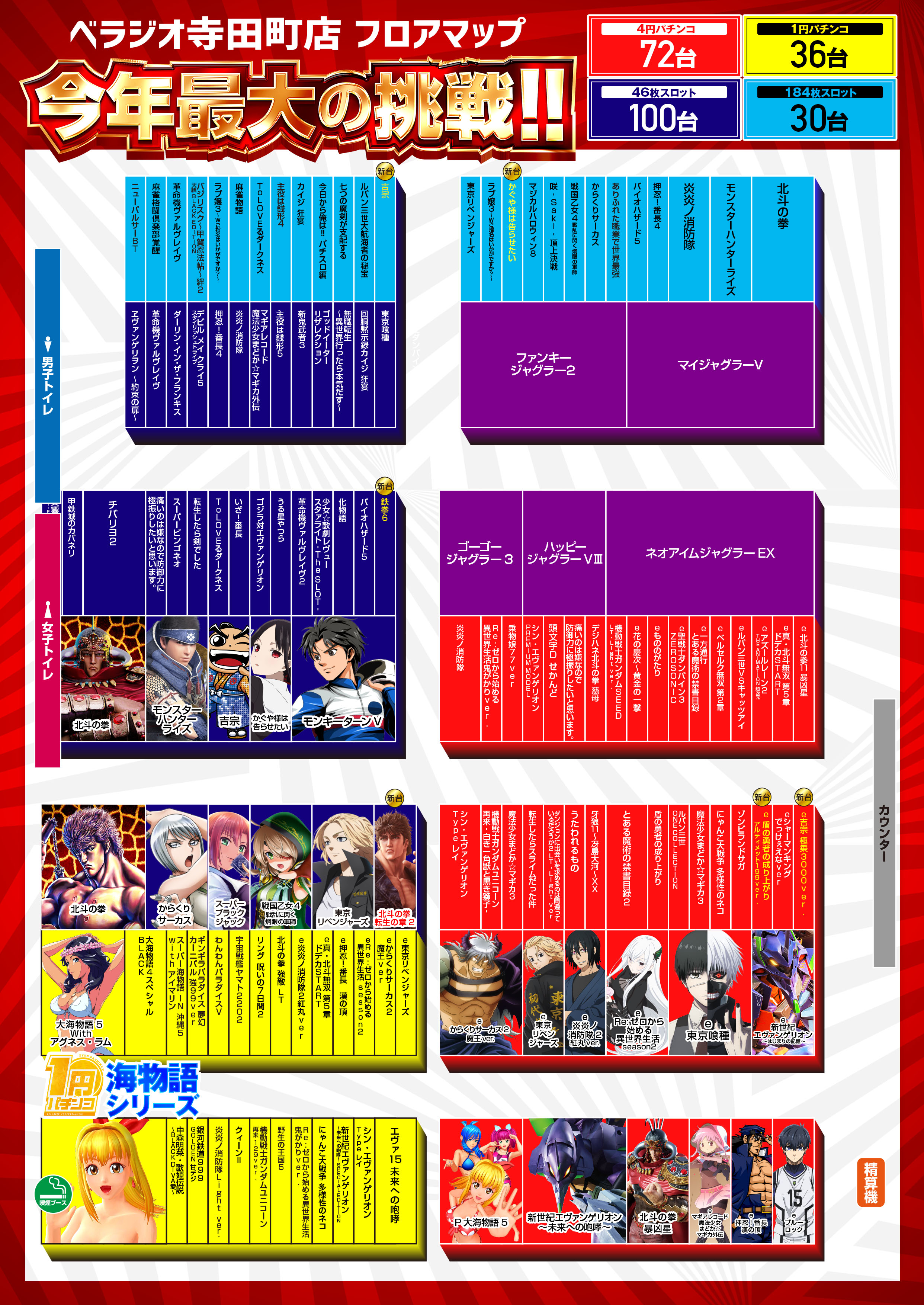 | 稼働台数 | パチンコ108台 / パチスロ130台 |