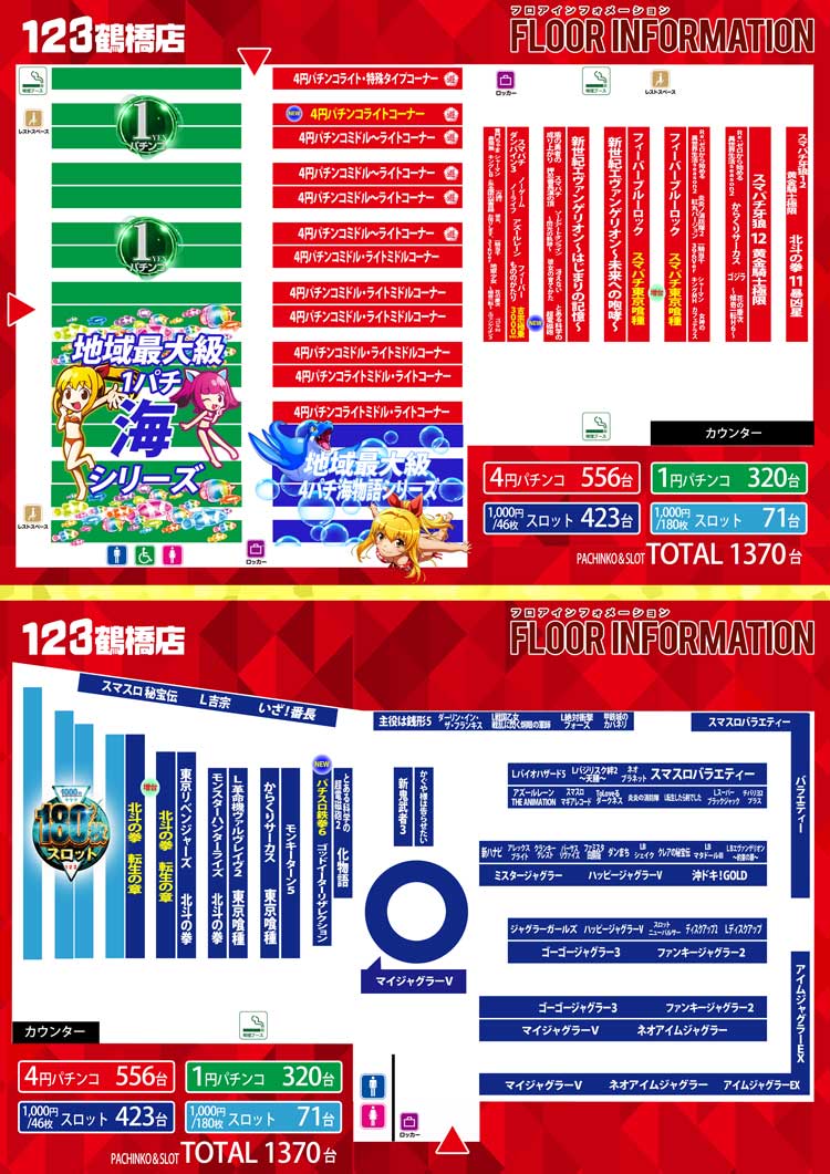 | 稼働台数 | パチンコ876台 / パチスロ494台 |