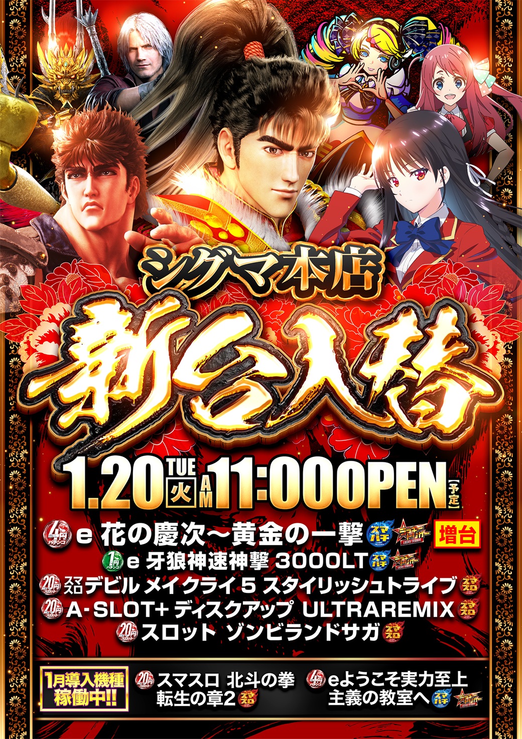 | 稼働台数 | パチンコ212台 / パチスロ95台 |