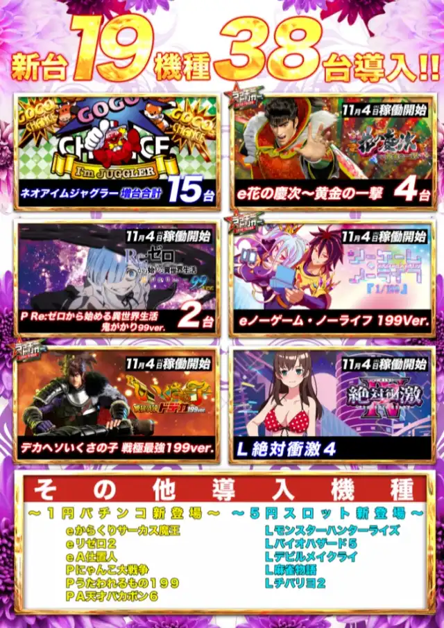 | 稼働台数 | パチンコ440台 / パチスロ351台 |
