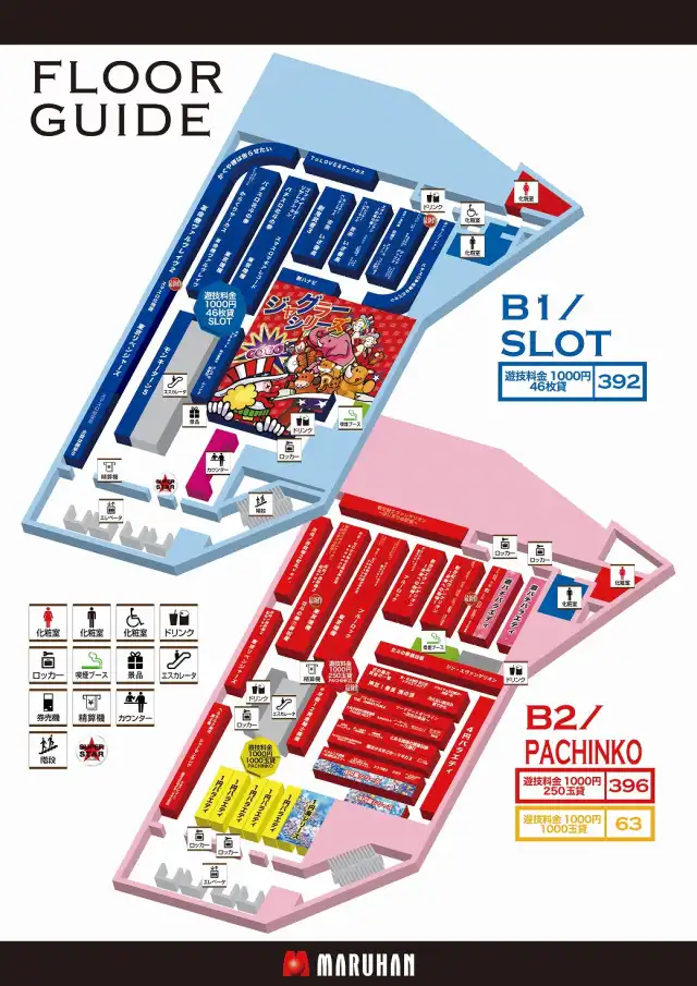 | 稼働台数 | パチンコ434台 / パチスロ385台 |
