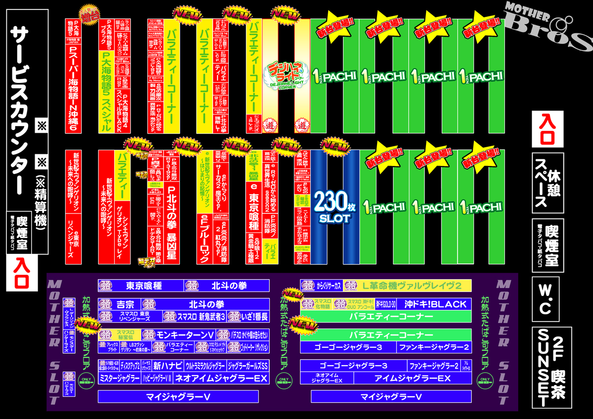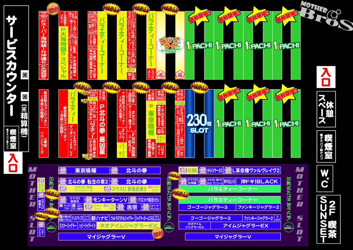 | 稼働台数 | パチンコ648台 / パチスロ240台 |