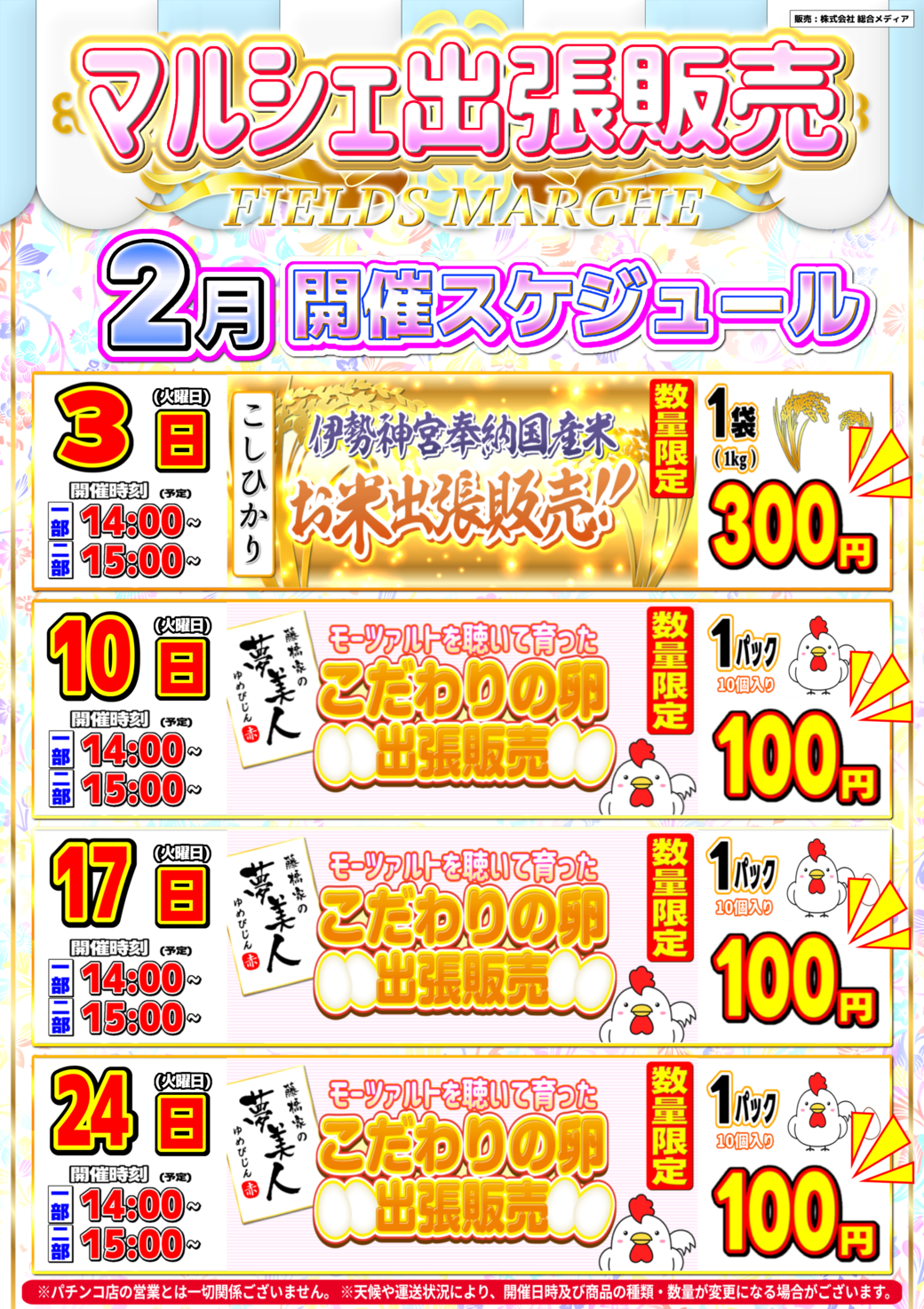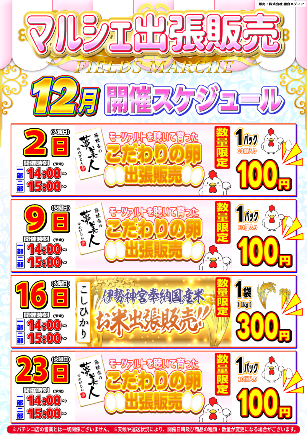 | 営業時間 | 10:00 ~ 22:45(定休日:年中無休(新台入替時のみお休みします)) |