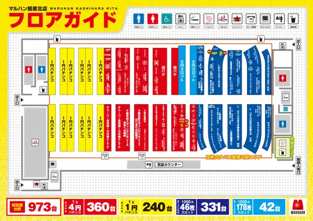 | 稼働台数 | パチンコ600台 / パチスロ373台 |