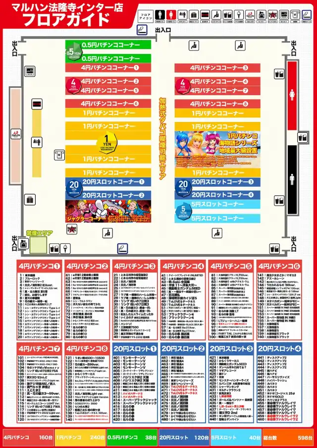 | 稼働台数 | パチンコ438台 / パチスロ160台 |