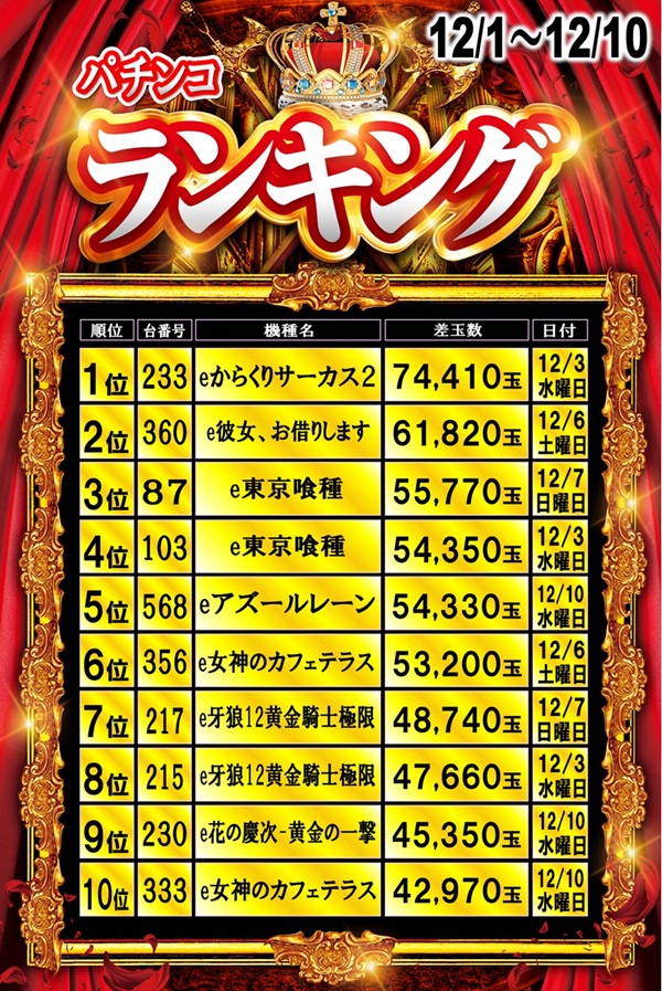 | 稼働台数 | パチンコ476台 / パチスロ380台 |