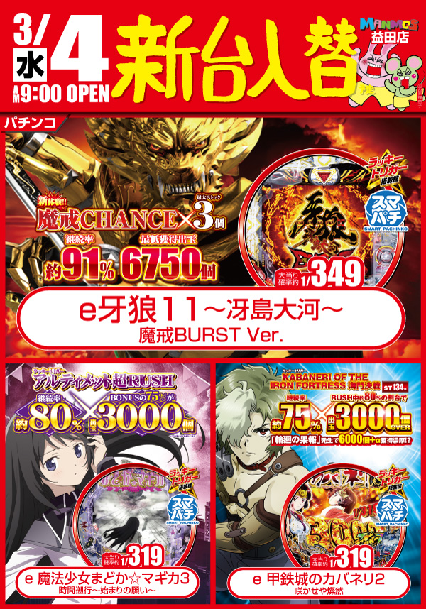 | 稼働台数 | パチンコ224台 / パチスロ213台 |