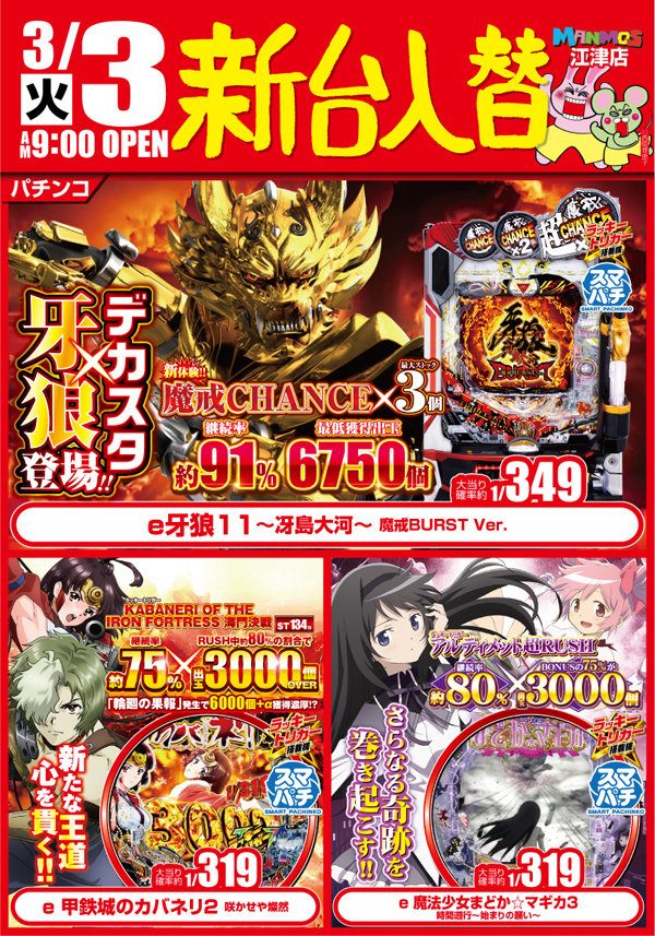 | 稼働台数 | パチンコ256台 / パチスロ180台 |