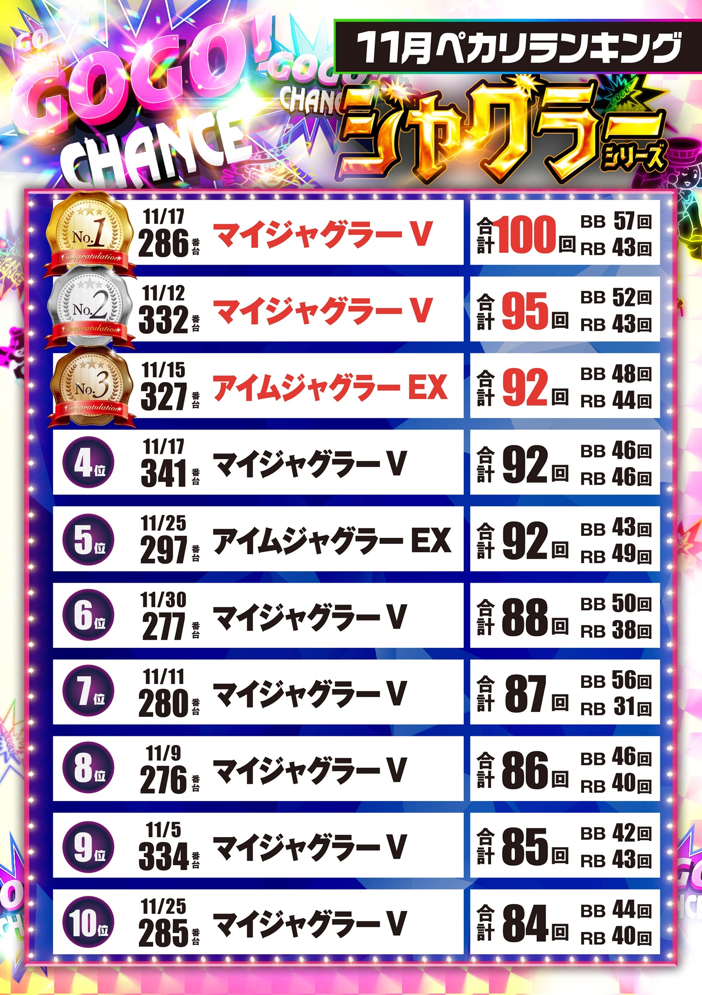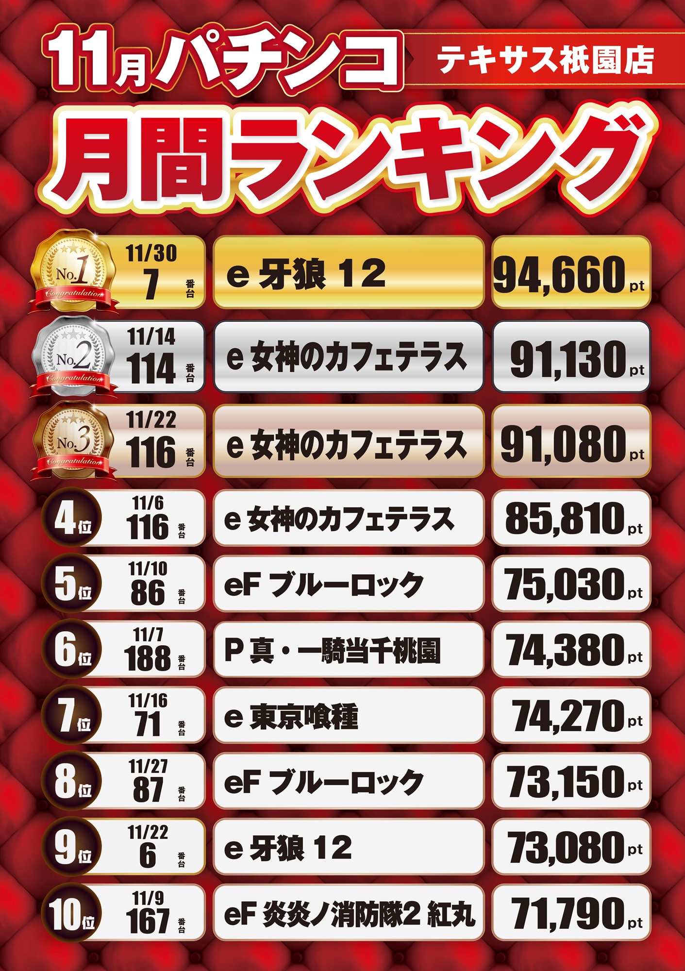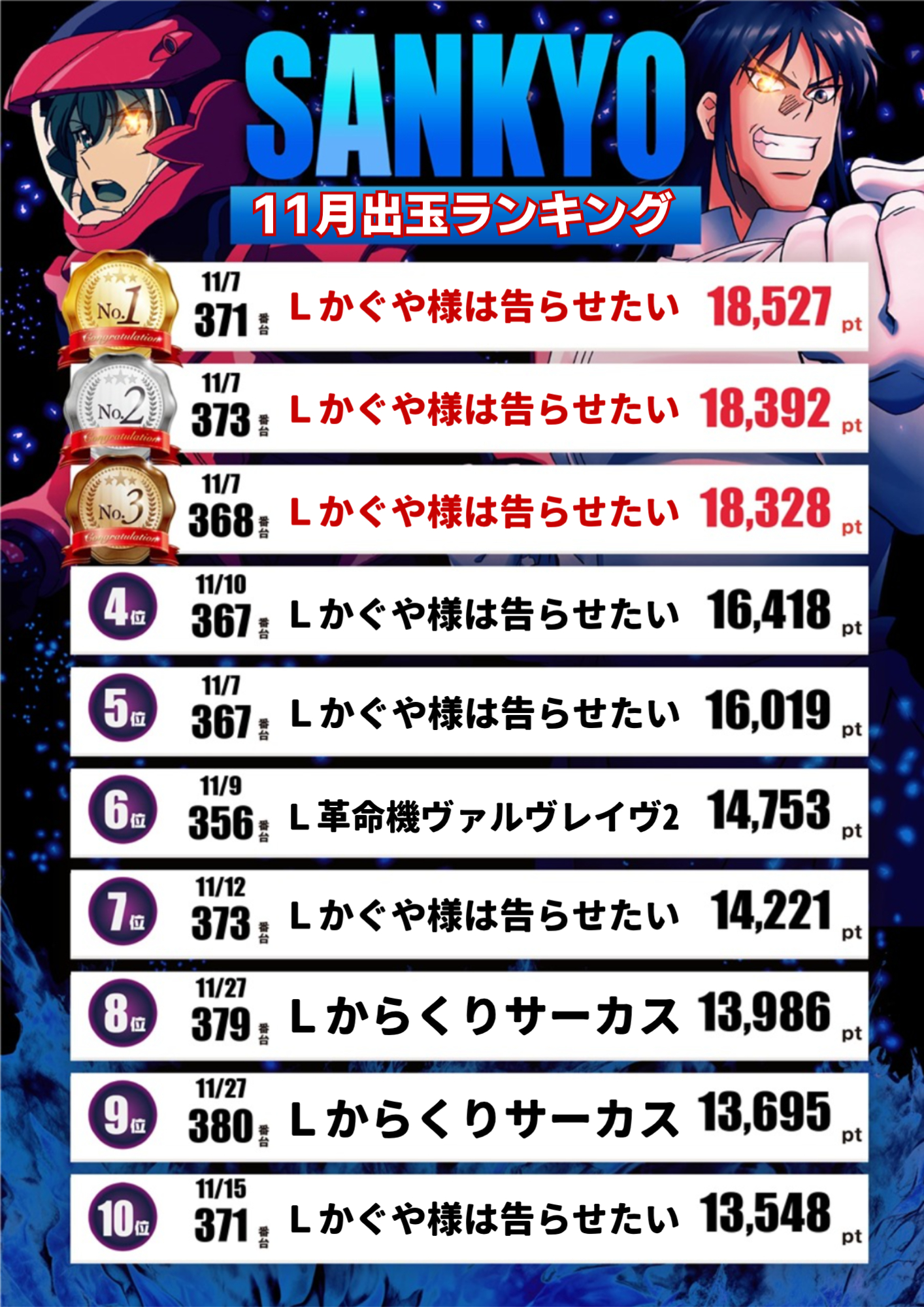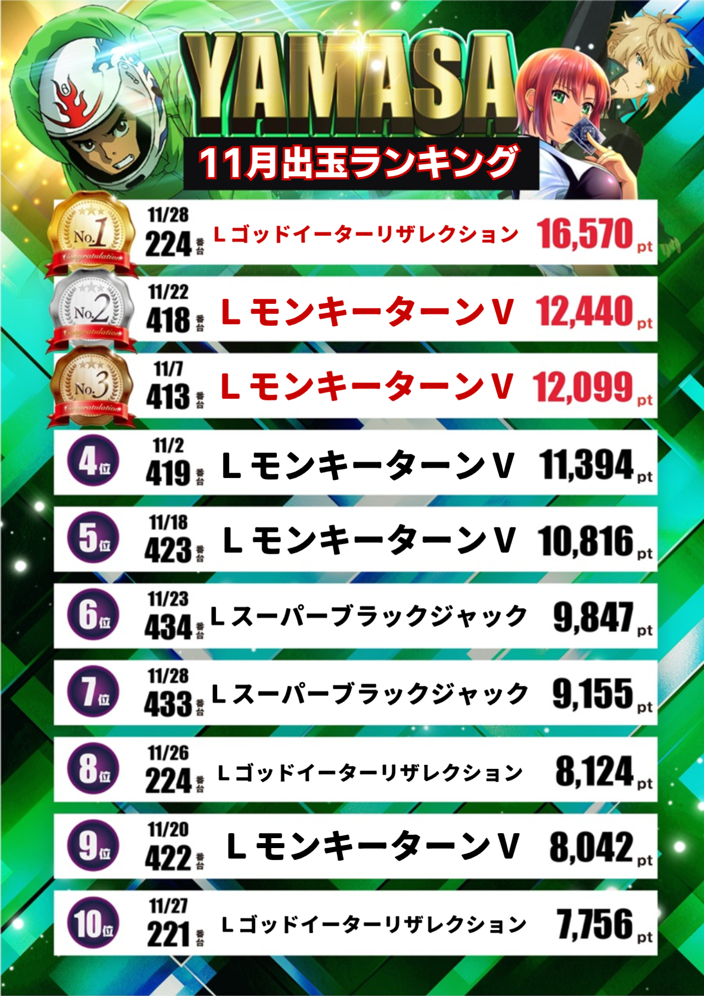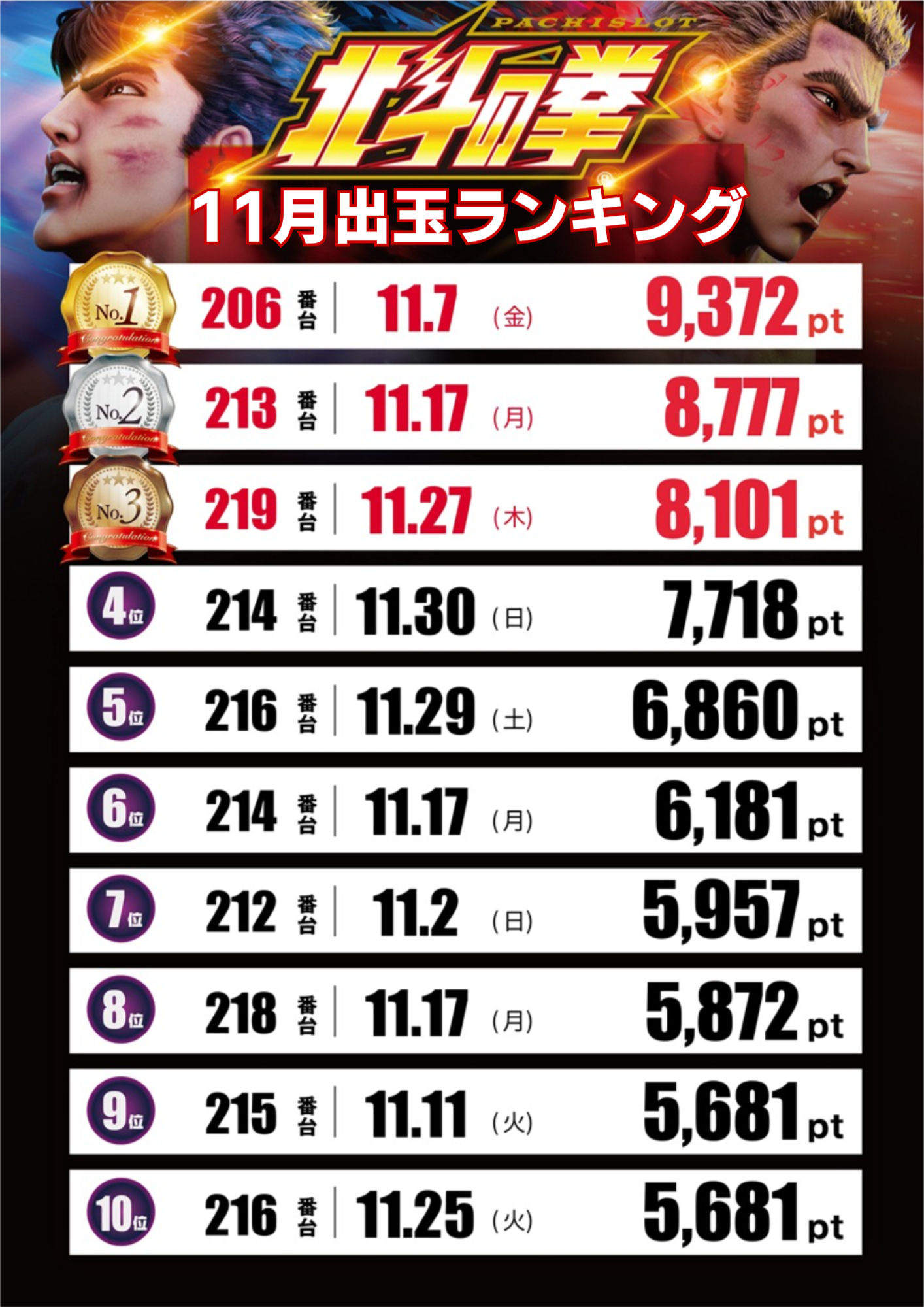 11月出玉ランキング