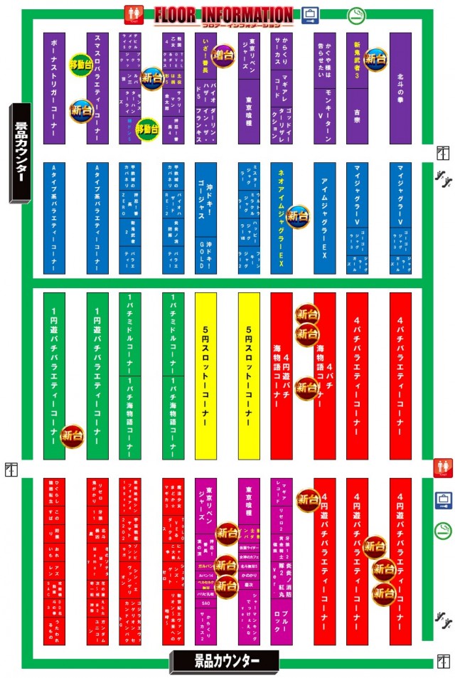 稼働台数 | パチンコ324台 / パチスロ276台 |