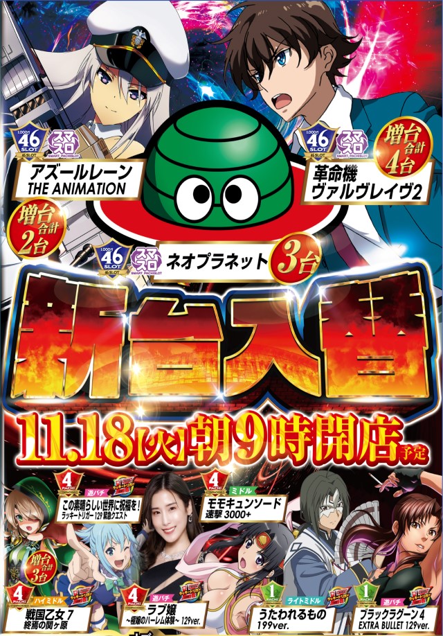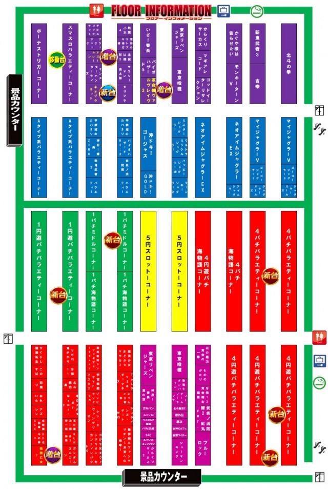 | 稼働台数 | パチンコ324台 / パチスロ276台 |