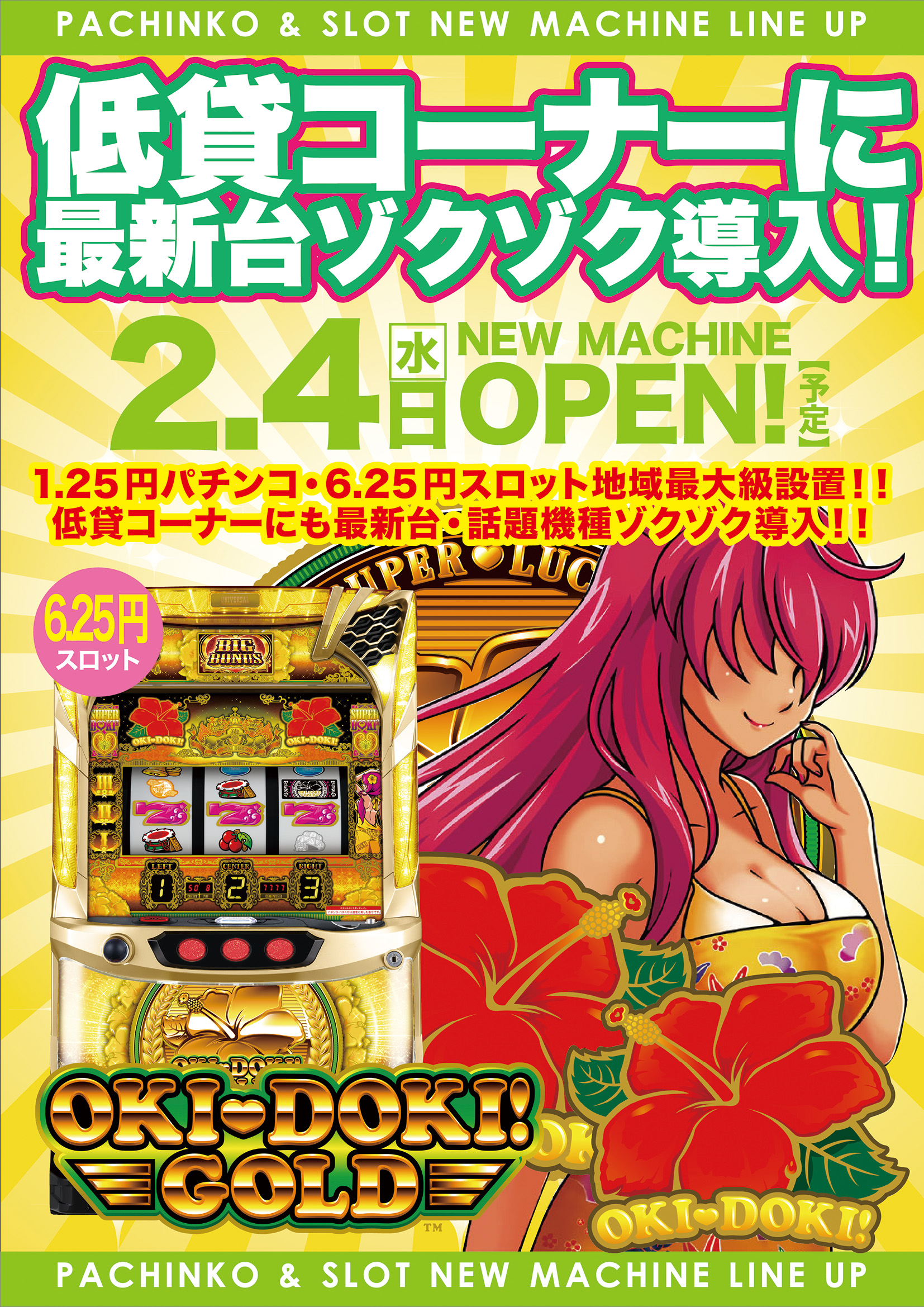 ぱちんこ…4円&1.25円 スロット…46枚スロ&6.25枚スロ 豊富な4スタイルで遊び方が選べる明るいお店です!!