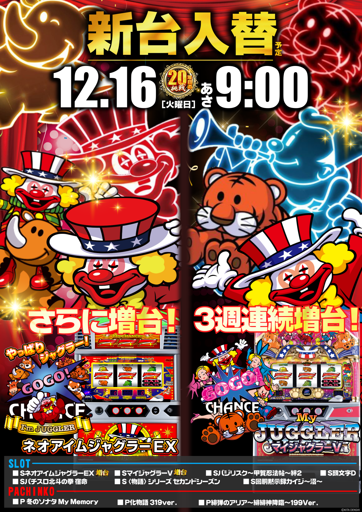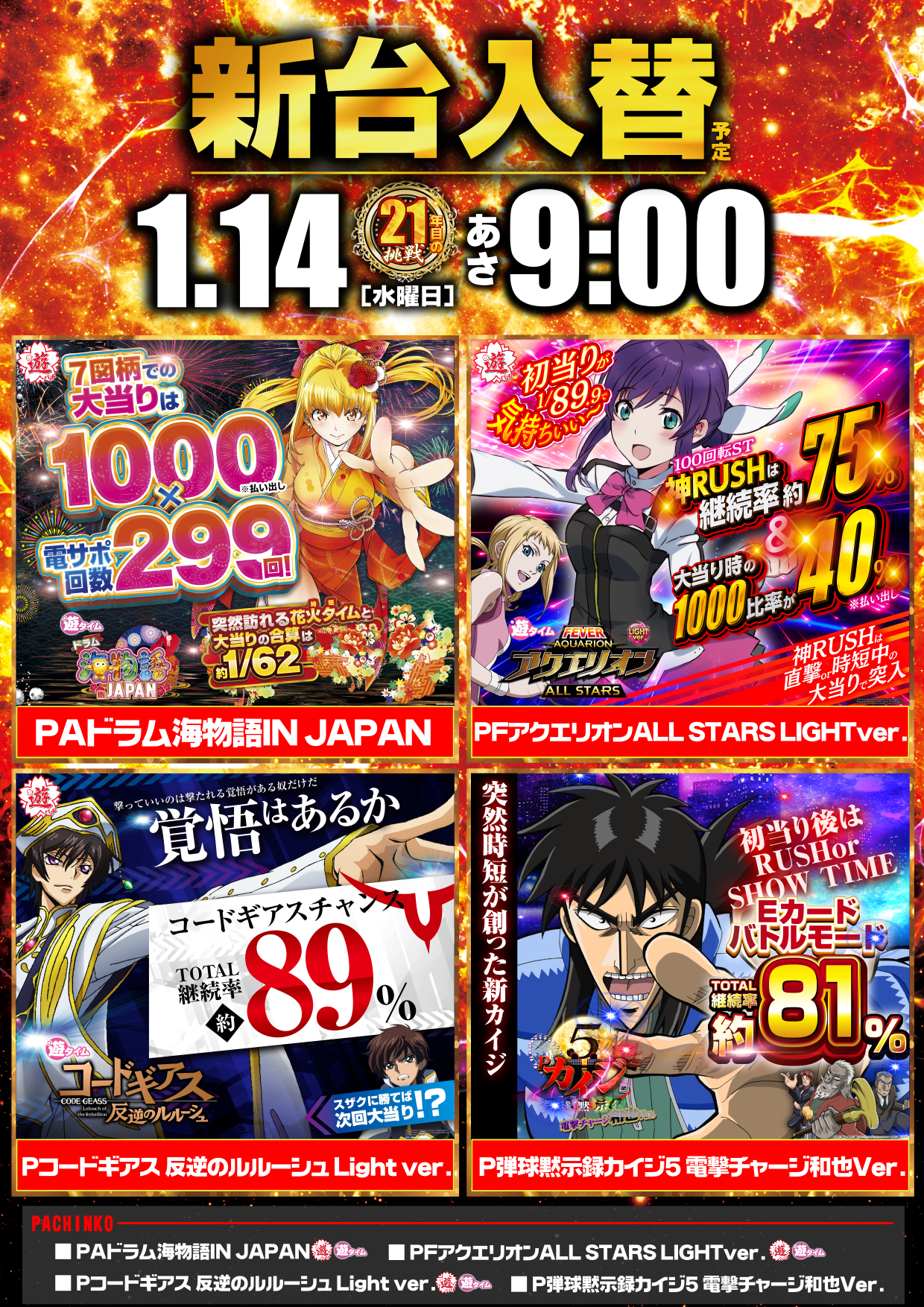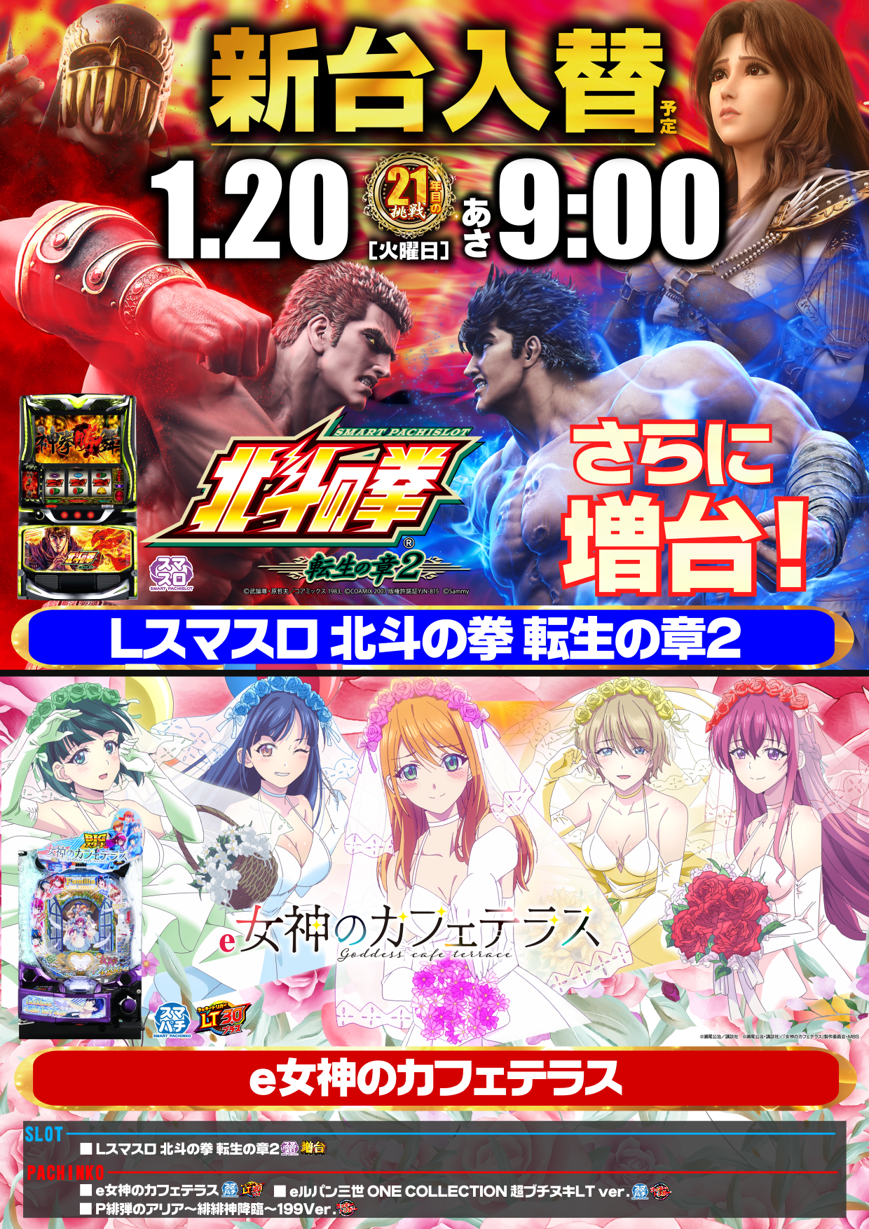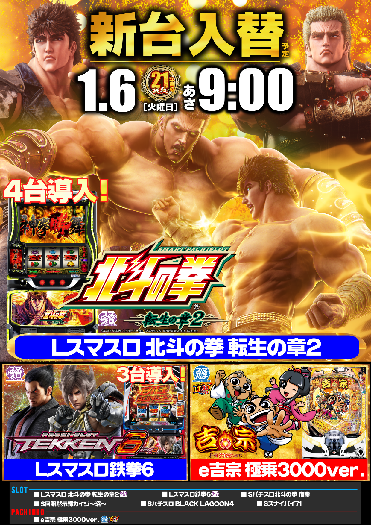 | 営業時間 | 09:00 ~ 22:45(定休日:不定休) 新台入替 |