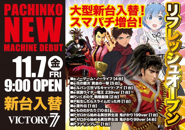 | 営業時間 | 09:00 ~ 22:50(定休日:月2回 木曜日(新台入替前日)) |