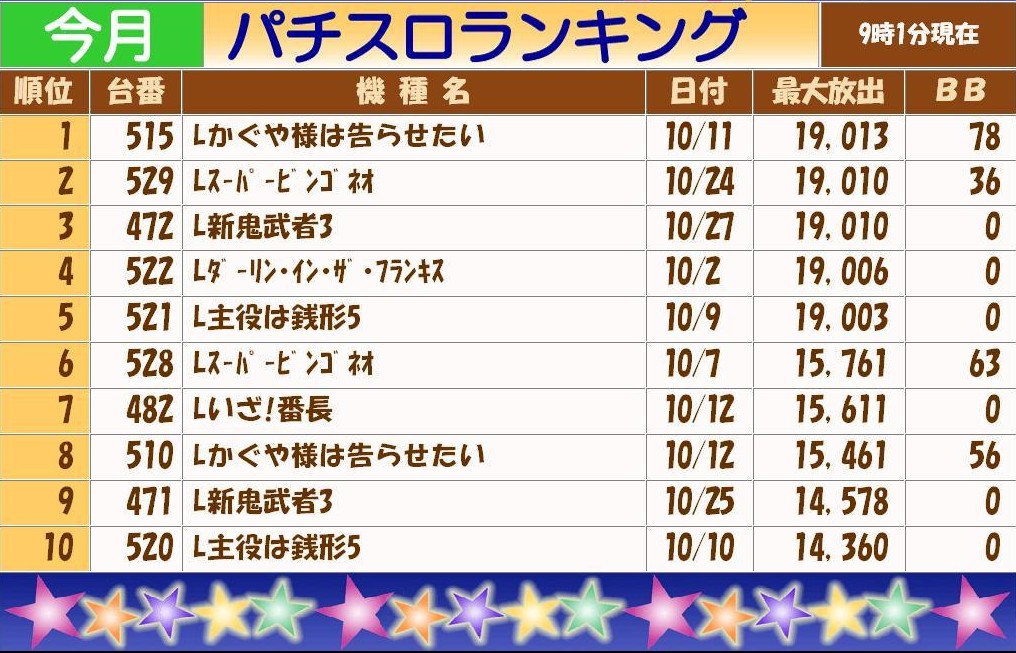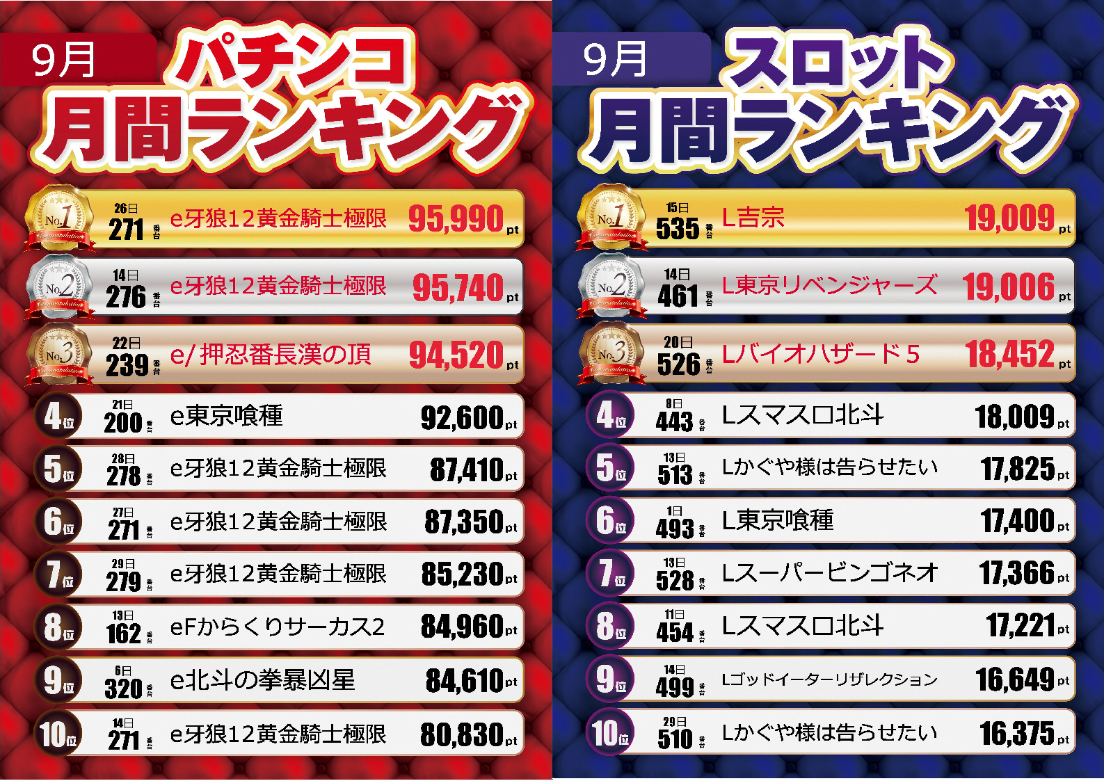 | ホール設備・貸玉料 | |