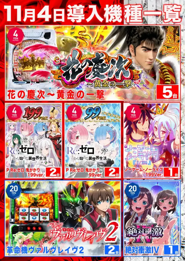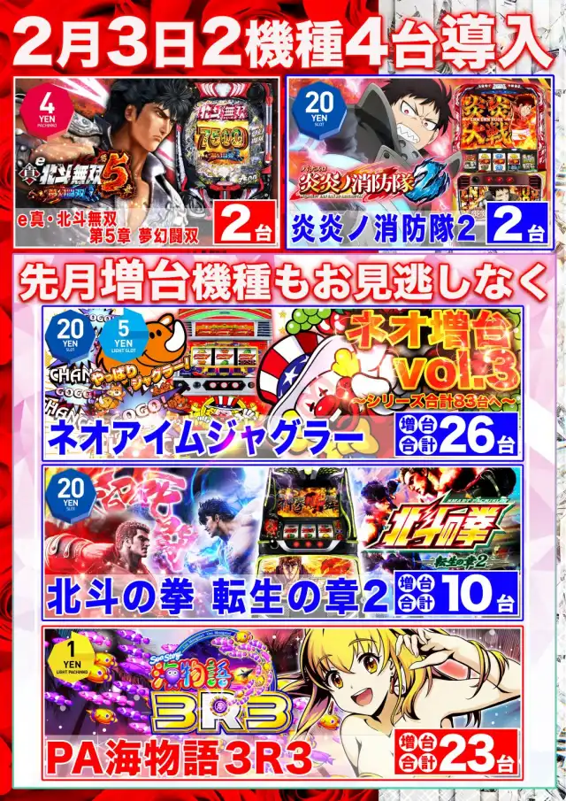 | 稼働台数 | パチンコ504台 / パチスロ324台 |