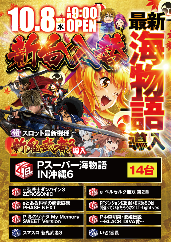 営業時間 | 09:00 ~ 22:45 会員カードをお持ちのお客様は、22:50まで延長遊技が可能となっております。 |