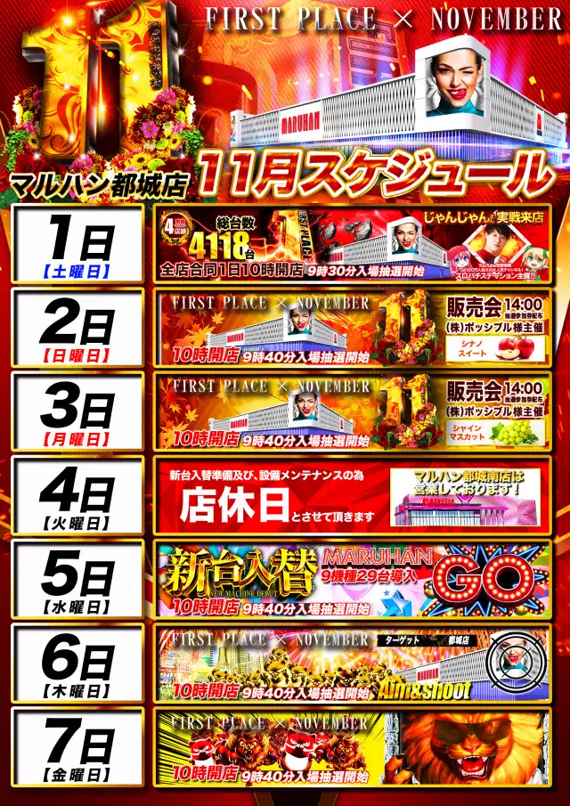 | 稼働台数 | パチンコ480台 / パチスロ450台 |