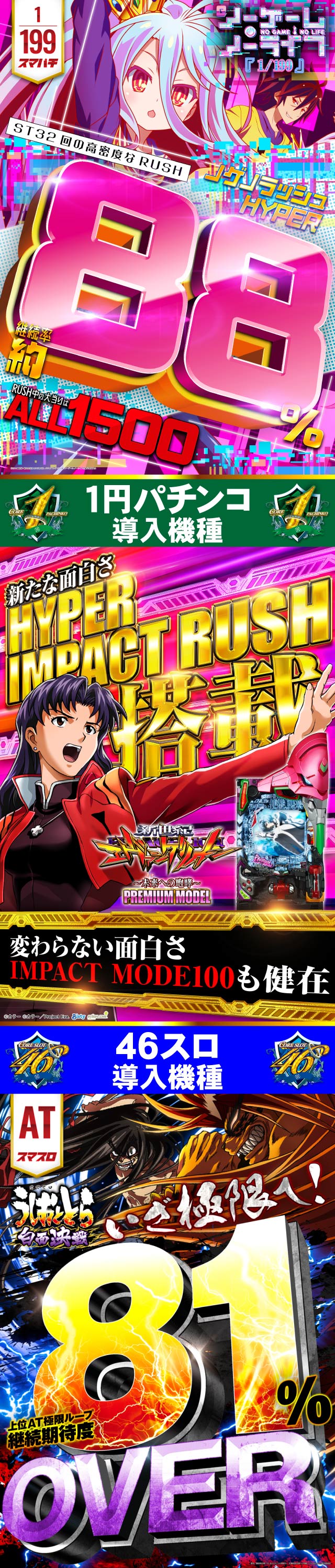 | 稼働台数 | パチンコ288台 / パチスロ216台 |