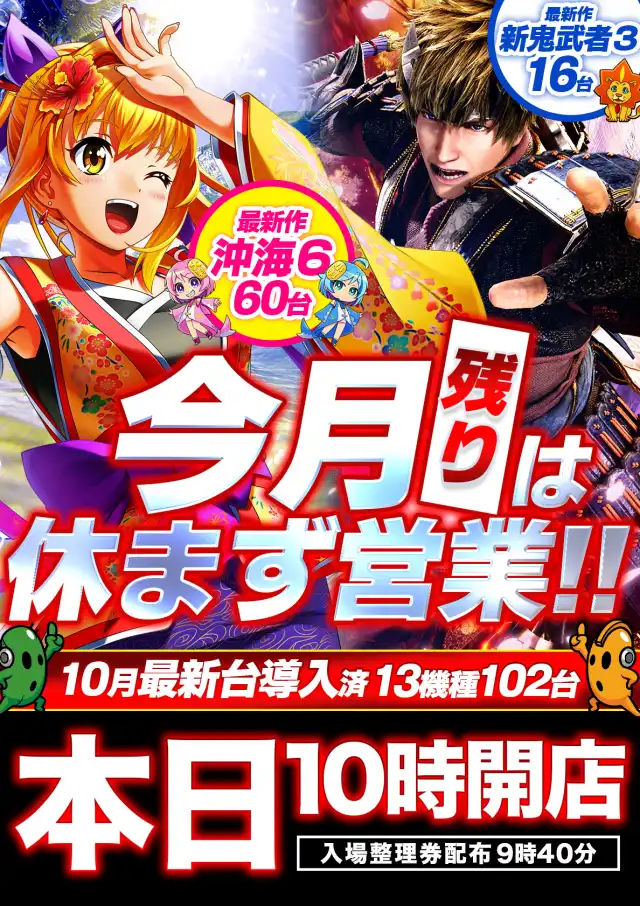 | 稼働台数 | パチンコ720台 / パチスロ508台 |