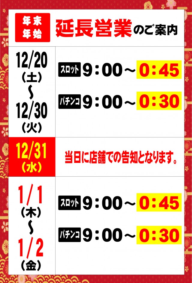 ★年末年始延長営業のご案内★