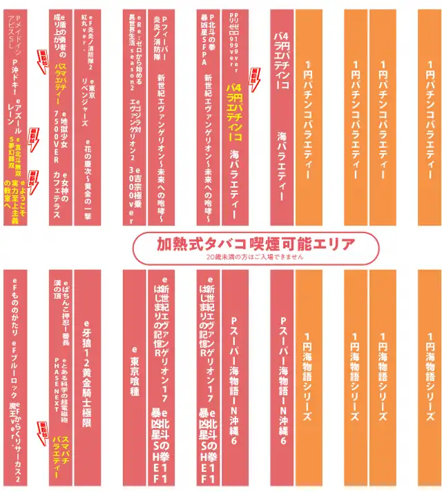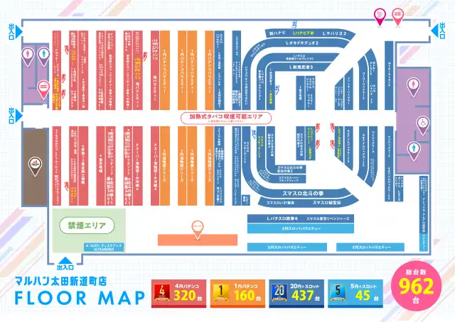 | 稼働台数 | パチンコ520台 / パチスロ357台 |