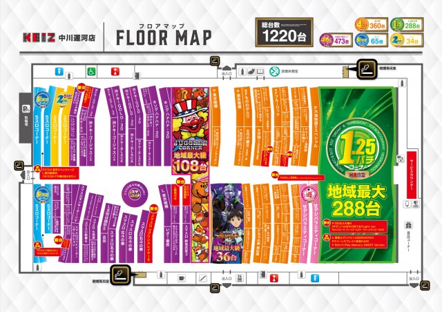 | 稼働台数 | パチンコ647台 / パチスロ569台 |