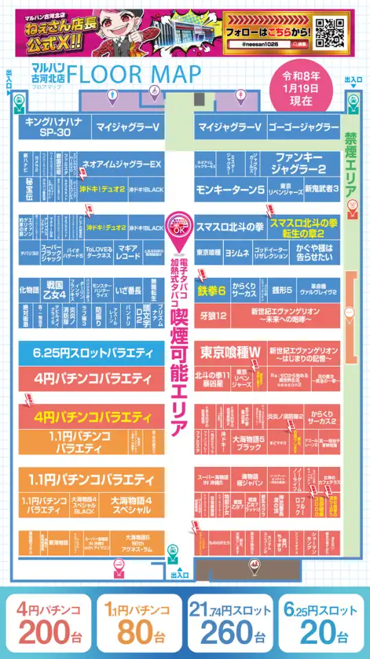 | 稼働台数 | パチンコ280台 / パチスロ280台 |